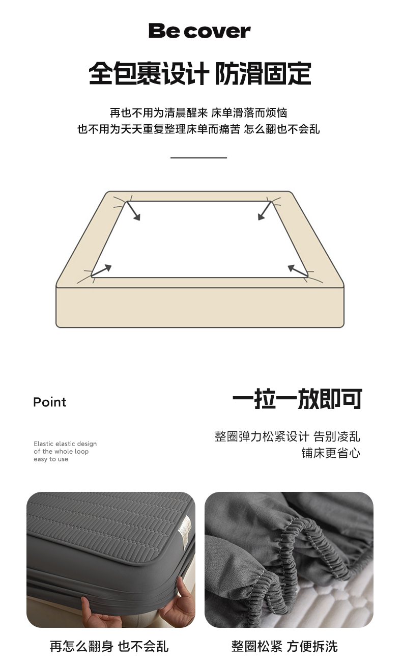 • 91家纺网 家纺一手货源 找家纺 芬晴家纺 2025新款A类全棉水洗棉夹棉床笠-甜心 甜心-岩灰