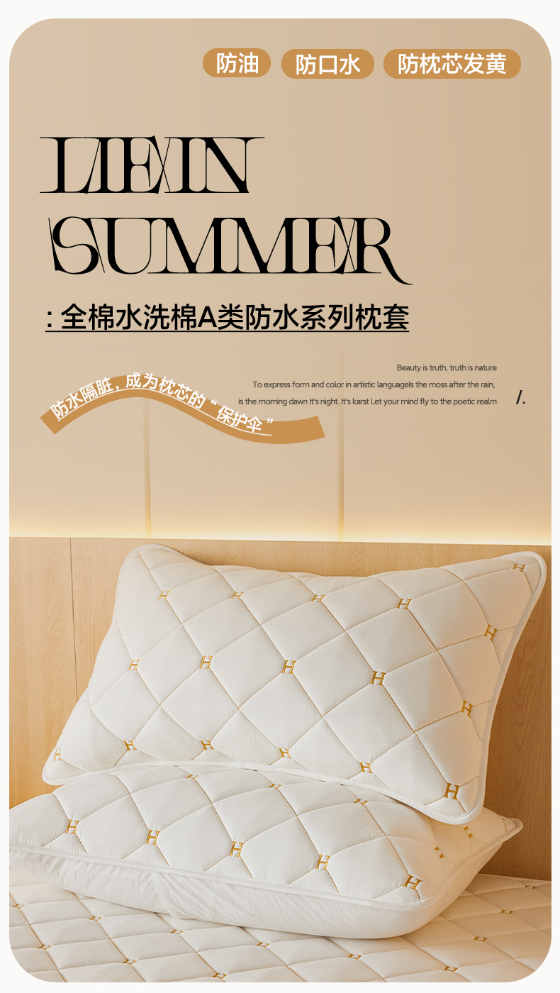 芬晴家纺 2025新款全棉水洗棉A类防水系列枕套 H-奶白