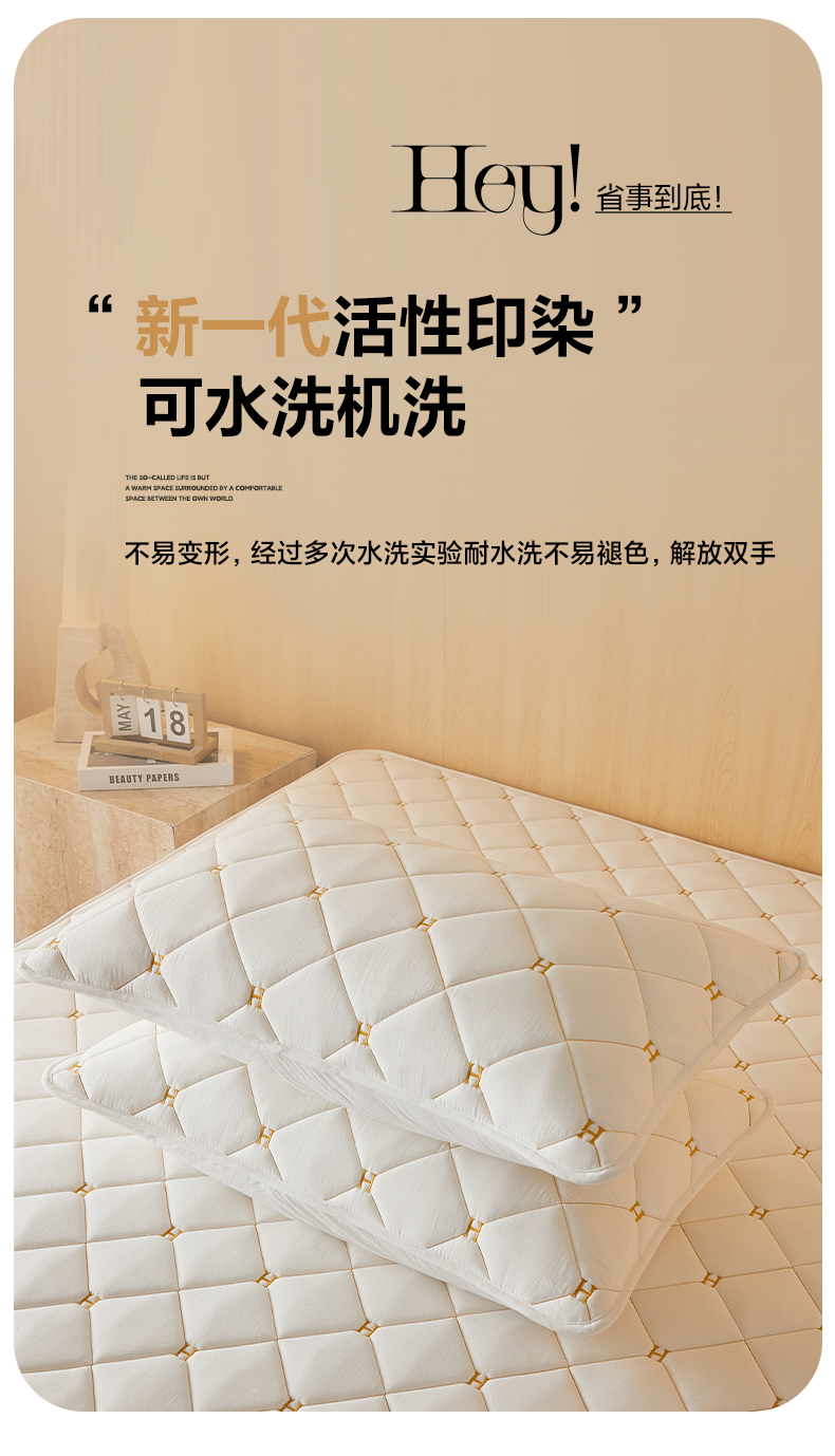 商品名称:芬晴家纺 2025新款全棉水洗棉A类防水系列枕套 H-奶白