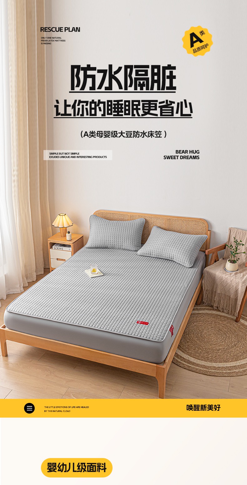 芬晴家纺 2025新款母婴级大豆防水床笠-马丁-风车 马丁-星灰