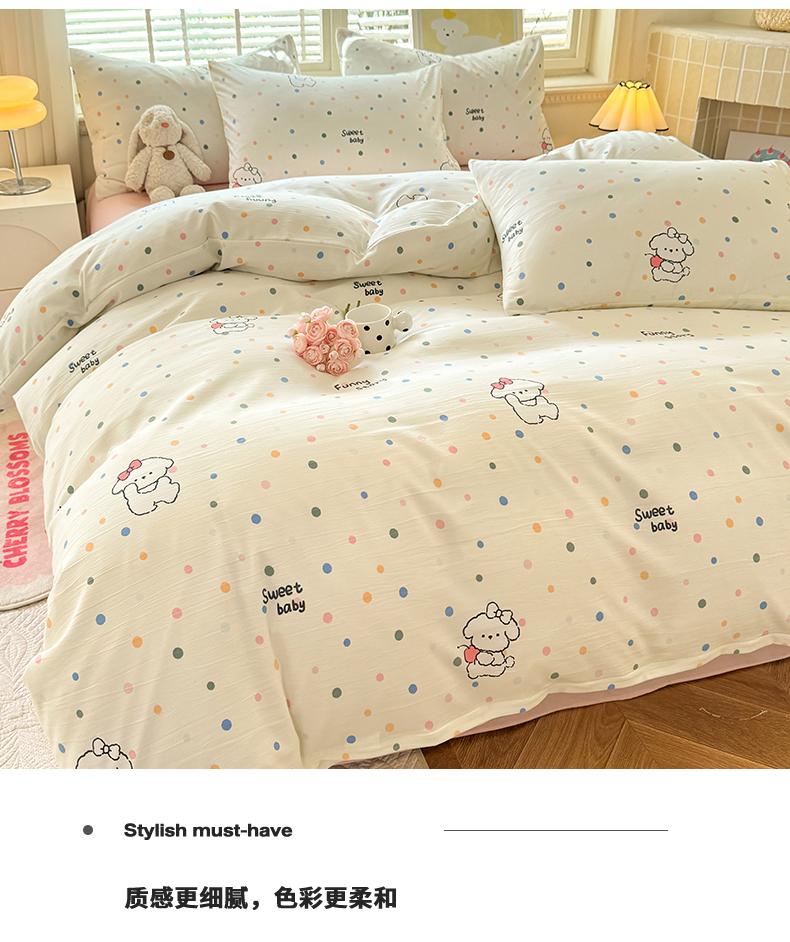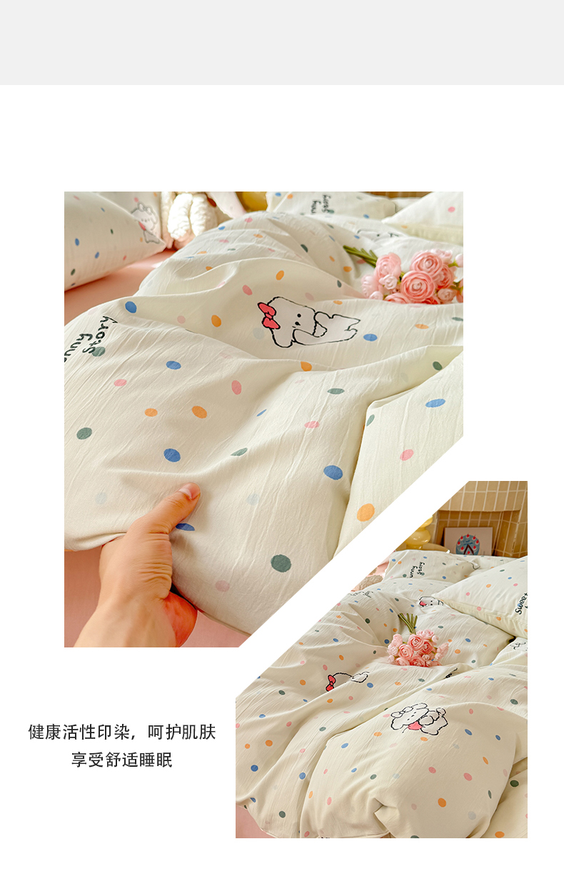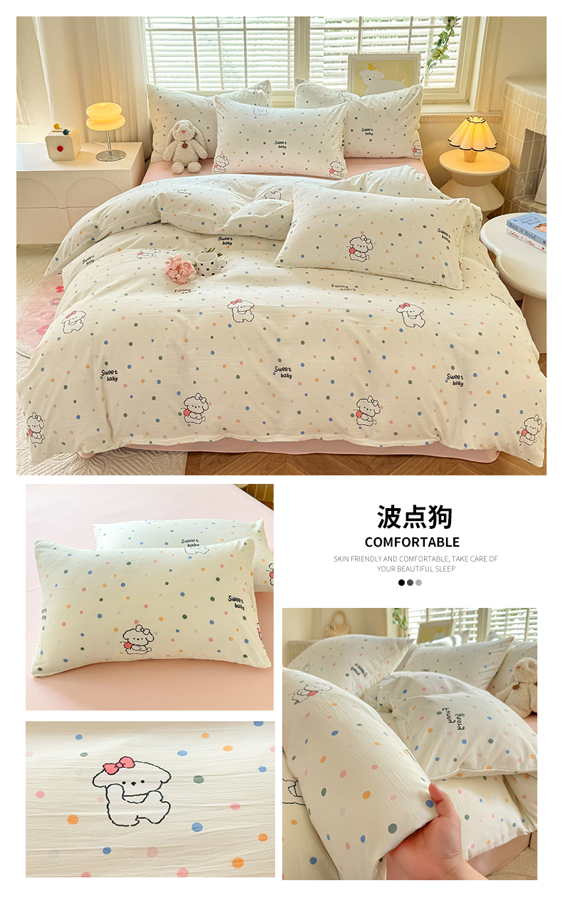 当前位置: 91家纺网 > 商品网购 > 床品套件 > 三件套 > 多品家纺 2025新款ins风水洗棉学生宿舍三件套 波点狗