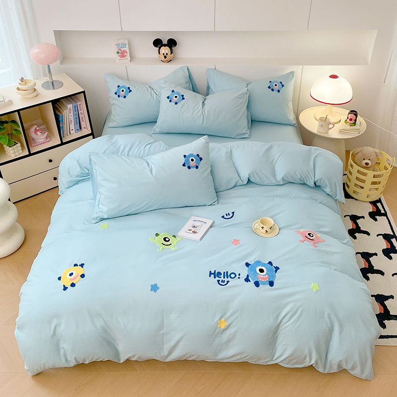 当前位置: 91家纺网 > 商品网购 > 床品套件 > 四件套 > 普通磨毛四件套 > 优尚佳生活馆 2025新款水洗棉毛巾绣四件套(提供买家秀) 大怪兽