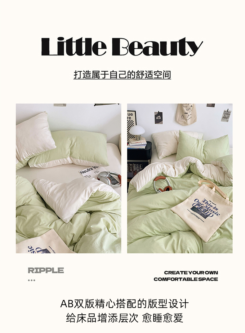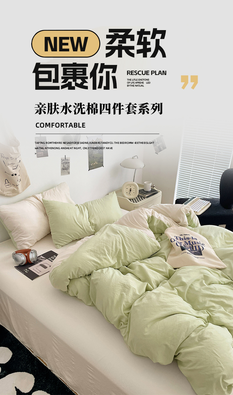 当前位置: 91家纺网 > 商品网购 > 床品套件 > 四件套 > 水洗棉四件套 > 优尚佳生活馆 2025新款INS风亲肤水洗棉四件套系列-纯色 青提茉莉