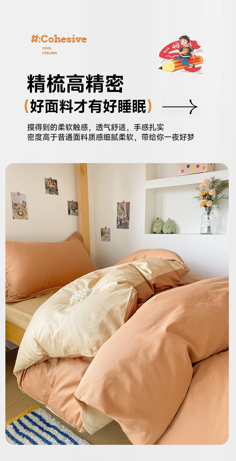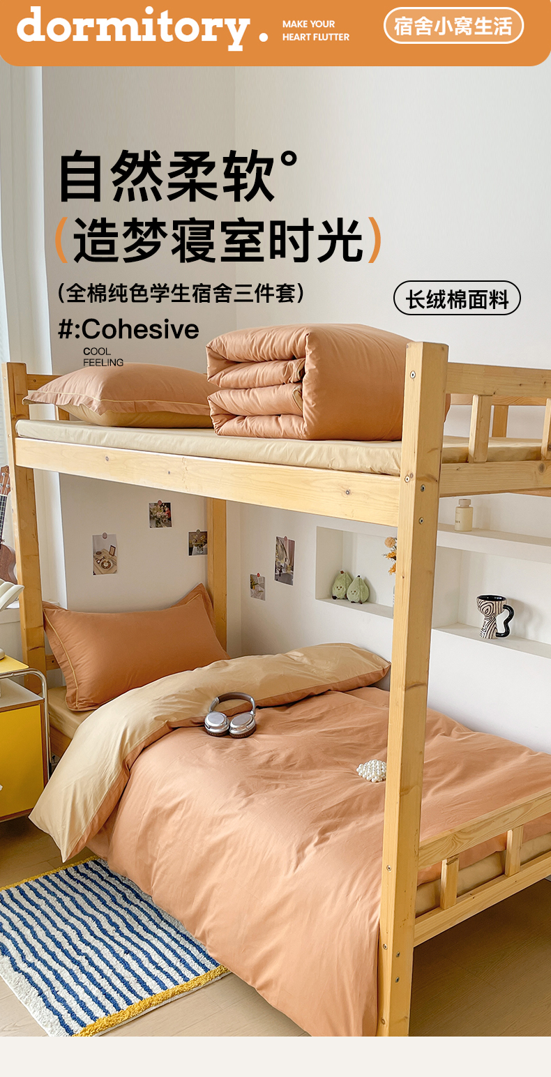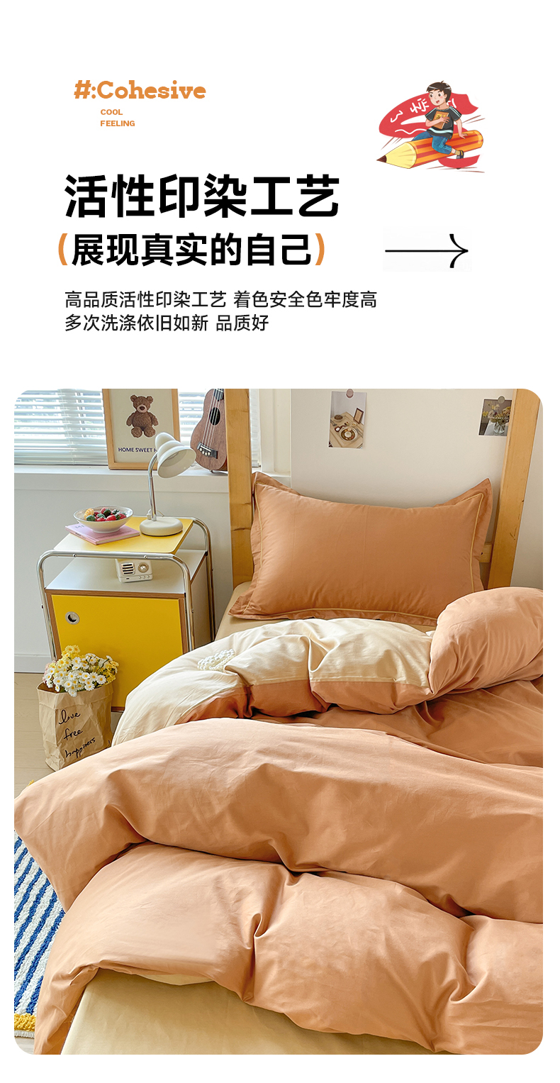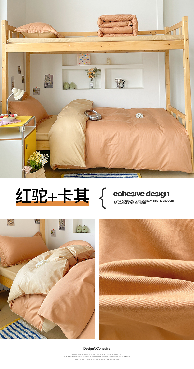 商品名称:恩泽家纺 2025新款全棉双拼学生宿舍三件套 红驼+卡其
