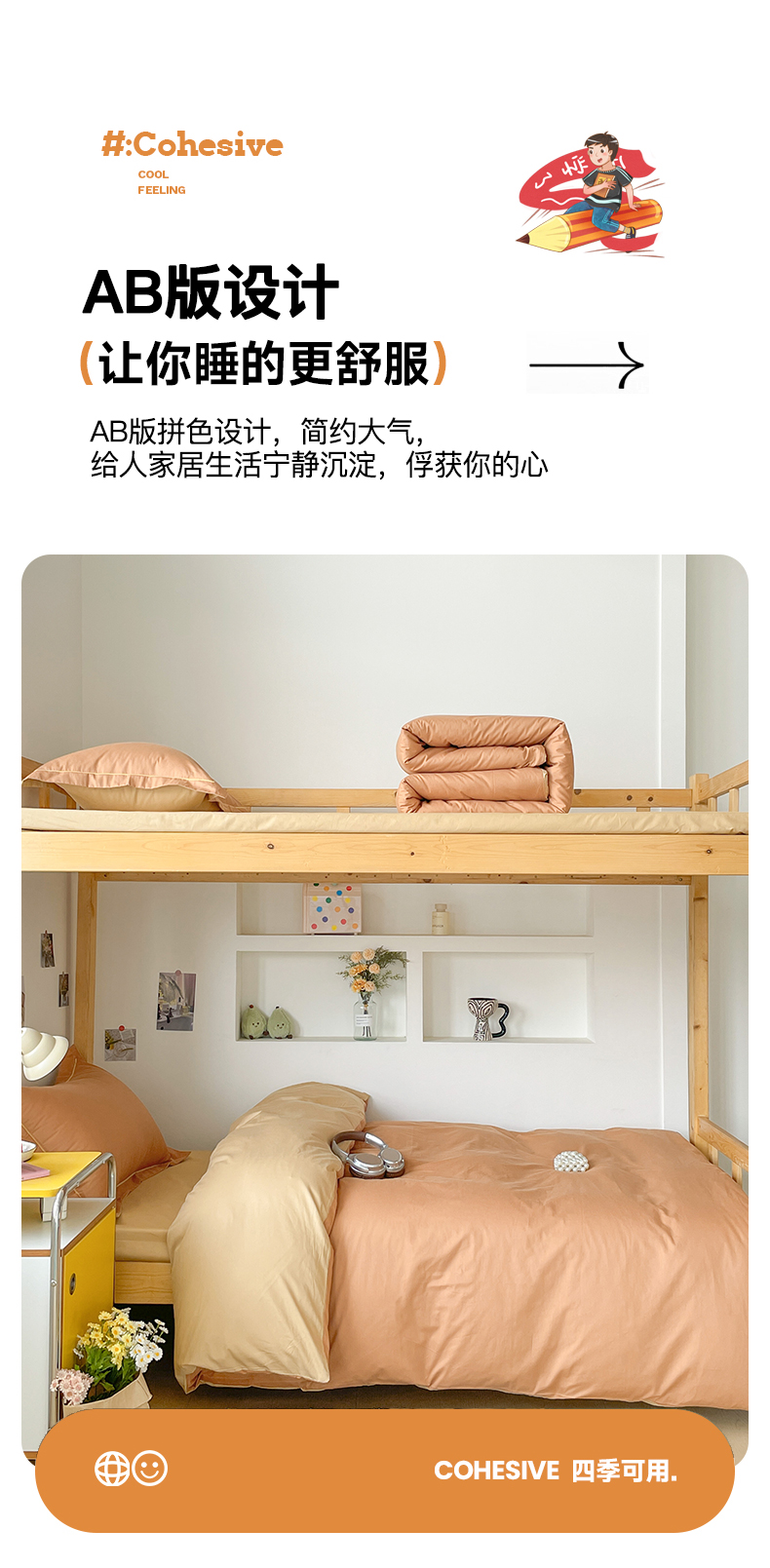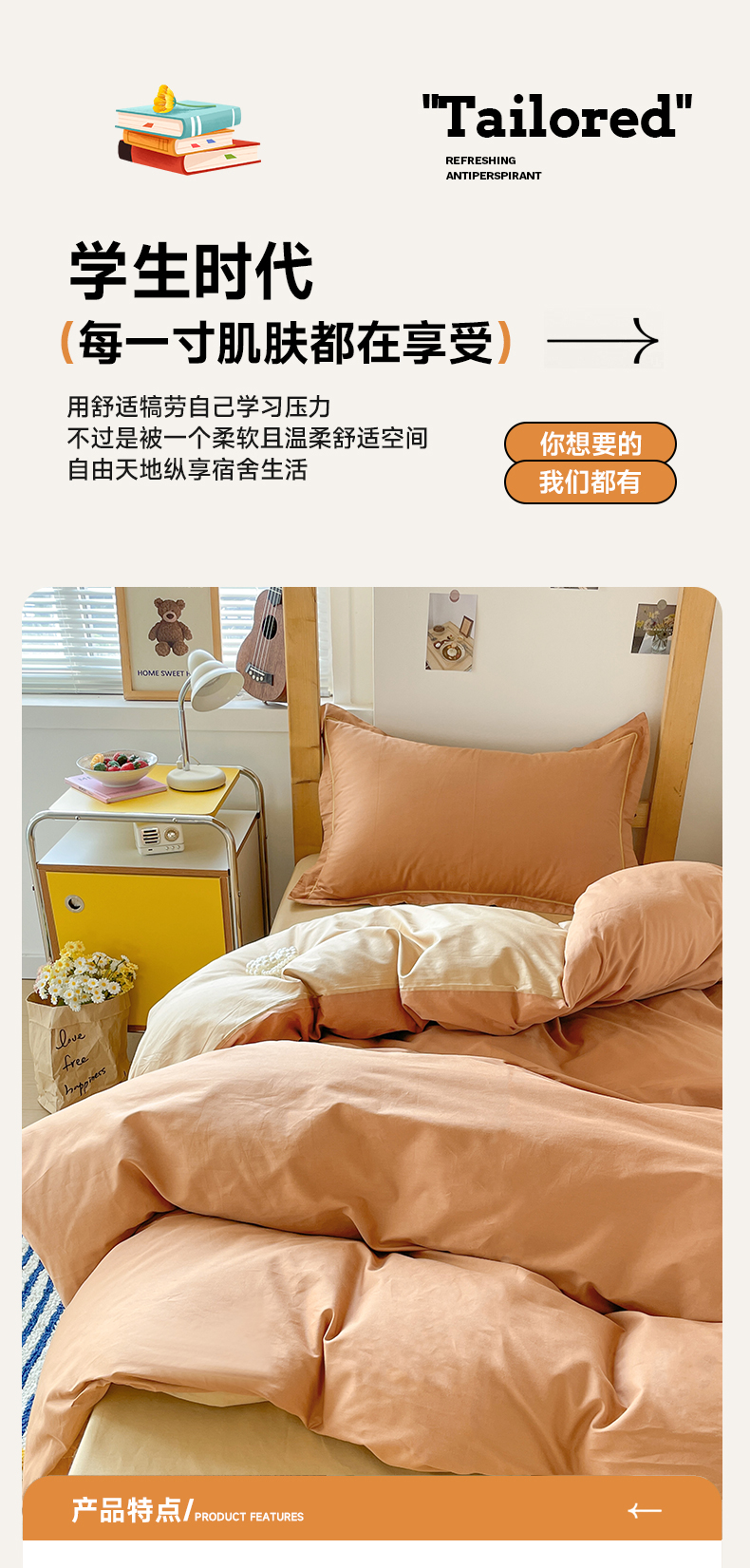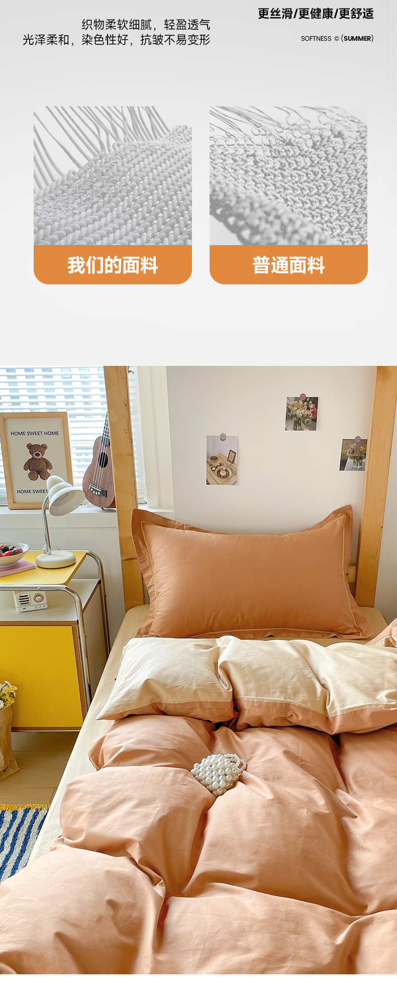 商品名称:恩泽家纺 2025新款全棉双拼学生宿舍三件套 红驼+卡其