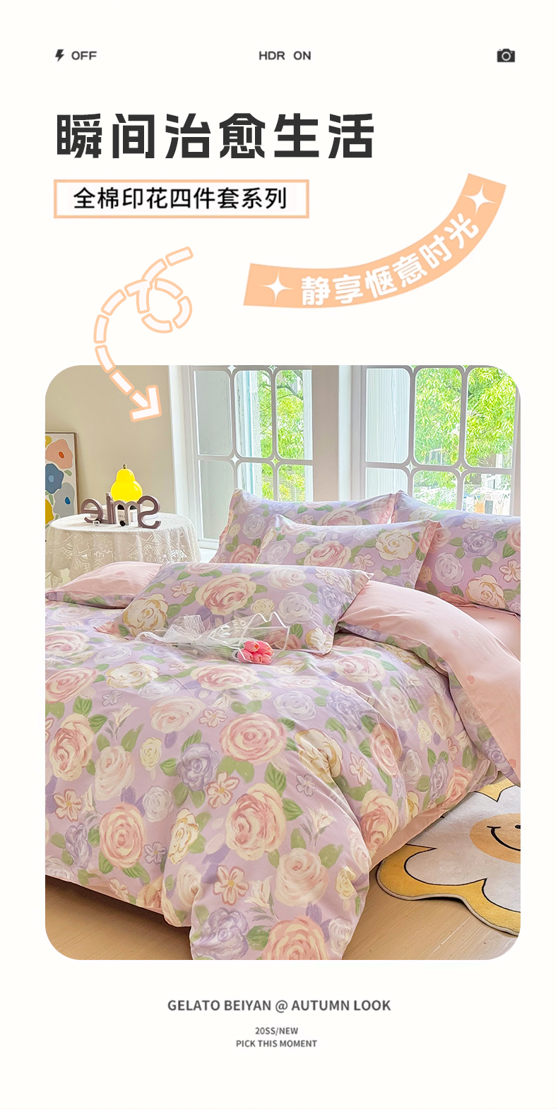 (总)珂博家纺 2026新款小碎花纯棉12868四件套全棉学生三件套场景二,好柿发生,潮流前线,晨曦花露,格调都市,花枝印象,浪漫满屋,曼塔罗,梦里繁花,青春律动,星辰大海