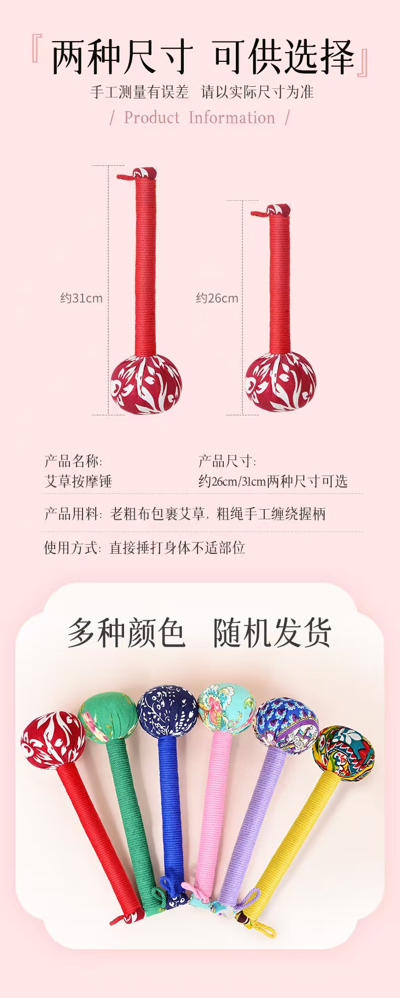 当前位置: 91家纺网 > 商品网购 > 居家日用 > 其他分类 > 梦莱家纺 2025新款艾草锤经络敲打diy养生锤手工艾草捶艾灸锤艾叶锤 31cm艾草锤随机花色 一只