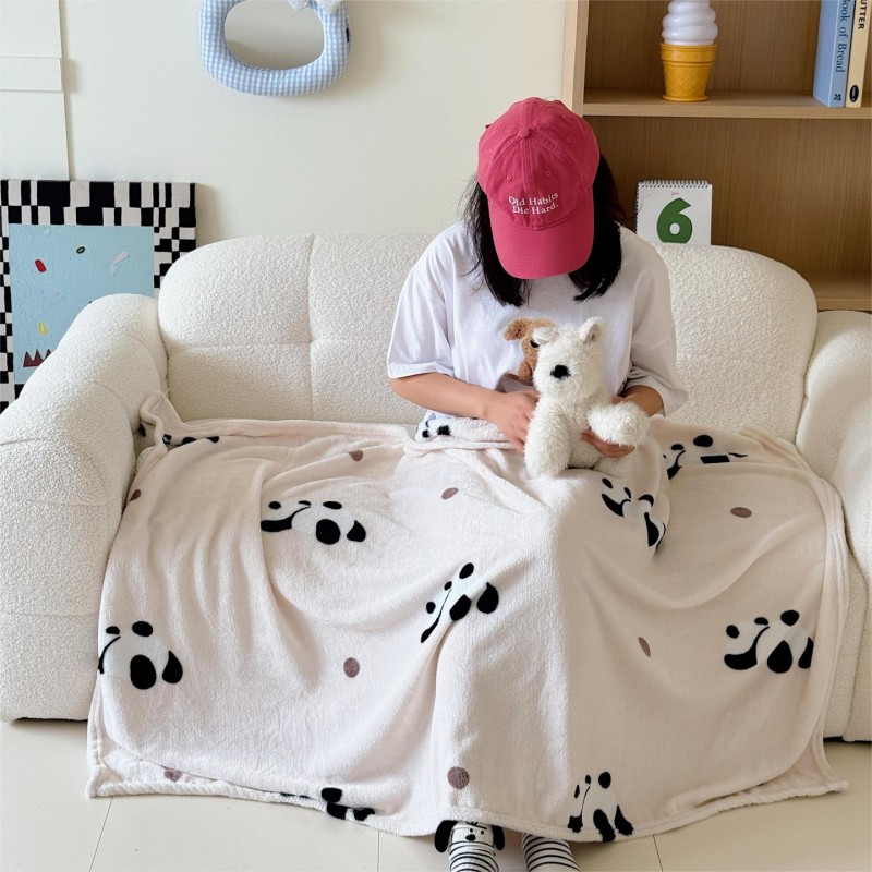 顾里家纺 2025新款ins少女奶油系双面牛奶绒毯-第二组 波点熊猫