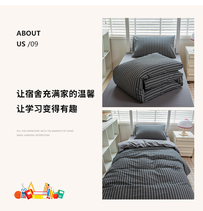 当前位置: 91家纺网 > 商品网购 > 床品套件 > 三件套 > 柠萌家居 2025新款无印良品风色织水洗棉A类学生宿舍三件套 留恋时光-黑