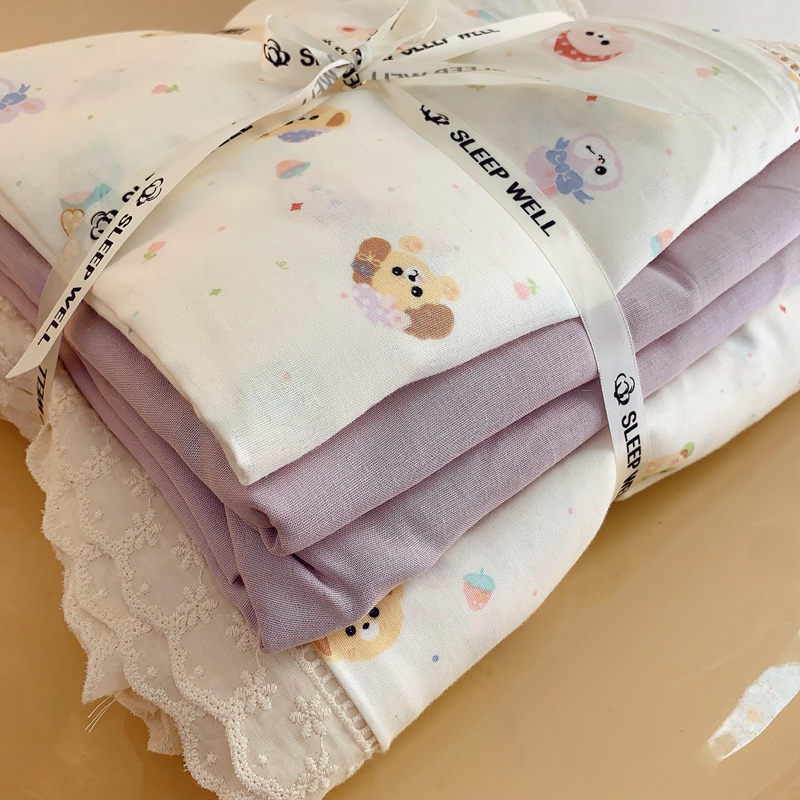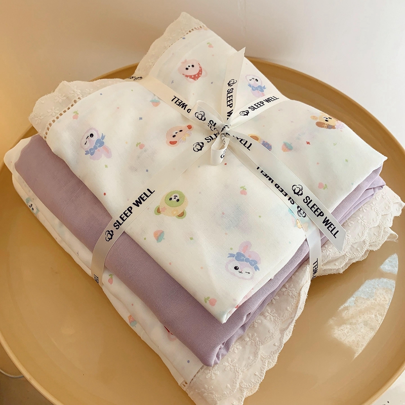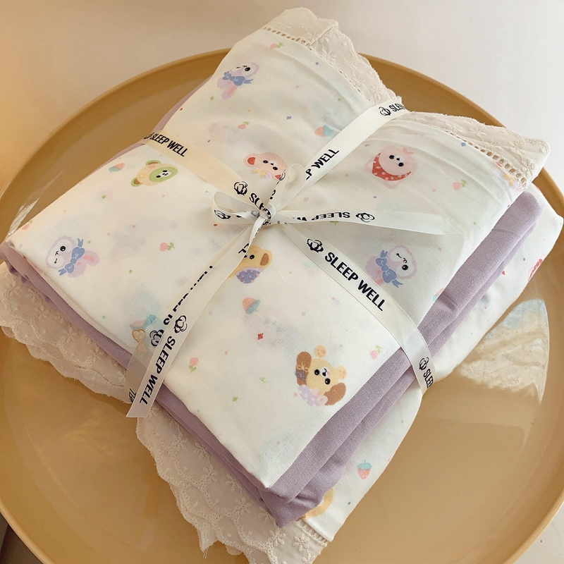 (总)奈萝家纺 2025新款全棉蕾丝花边床盖三件套四件套纯棉花边夏被,呆呆熊,花语绿,花语紫,柠檬,蔷薇,西瓜兔,夏蓝,夏梦,夏之语,小花熊,樱花