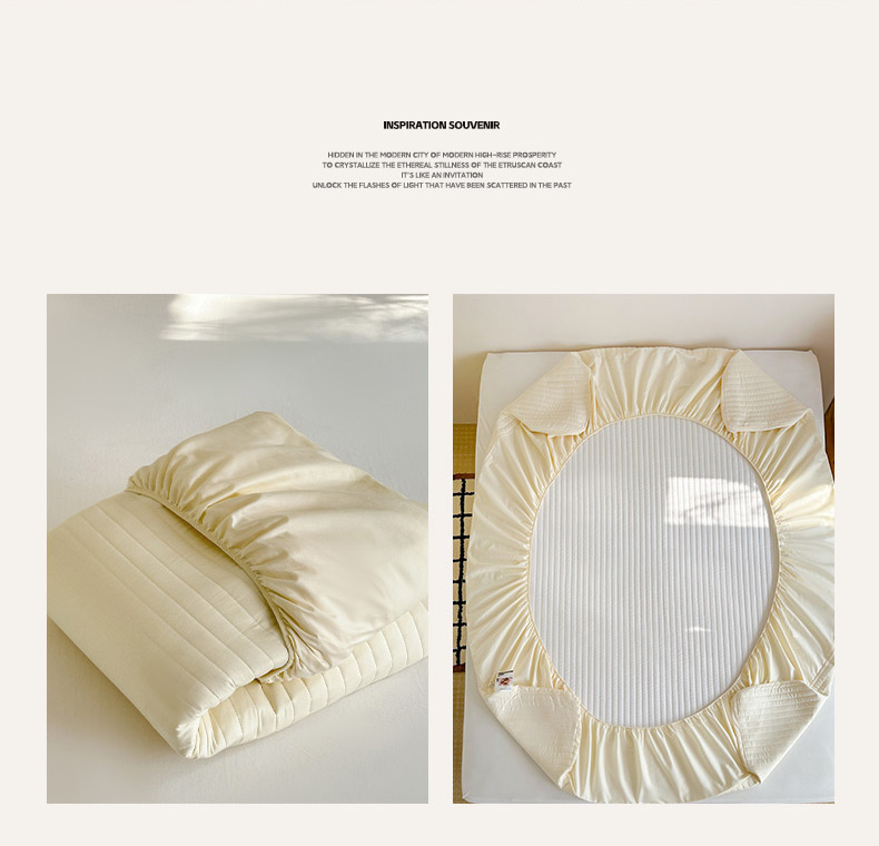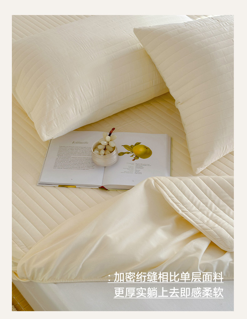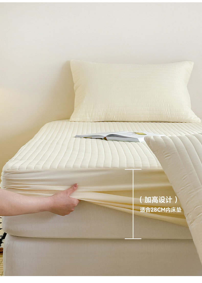 商品名称:三味舒屋 2025新款韩风小时光宽条全棉纯棉夹棉床笠系列单床笠床笠单件 时光浅黄