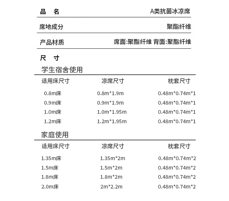 商品名称:(总)莱家富 2025新款抗菌条纹凉席冰丝席