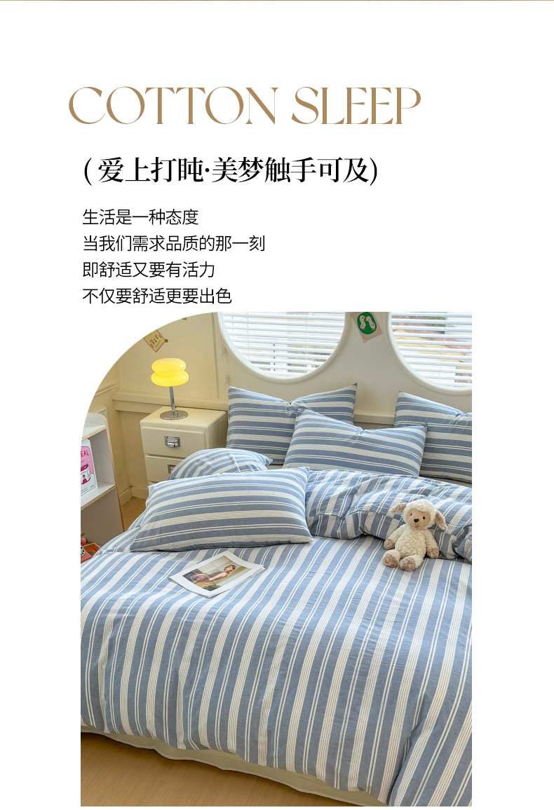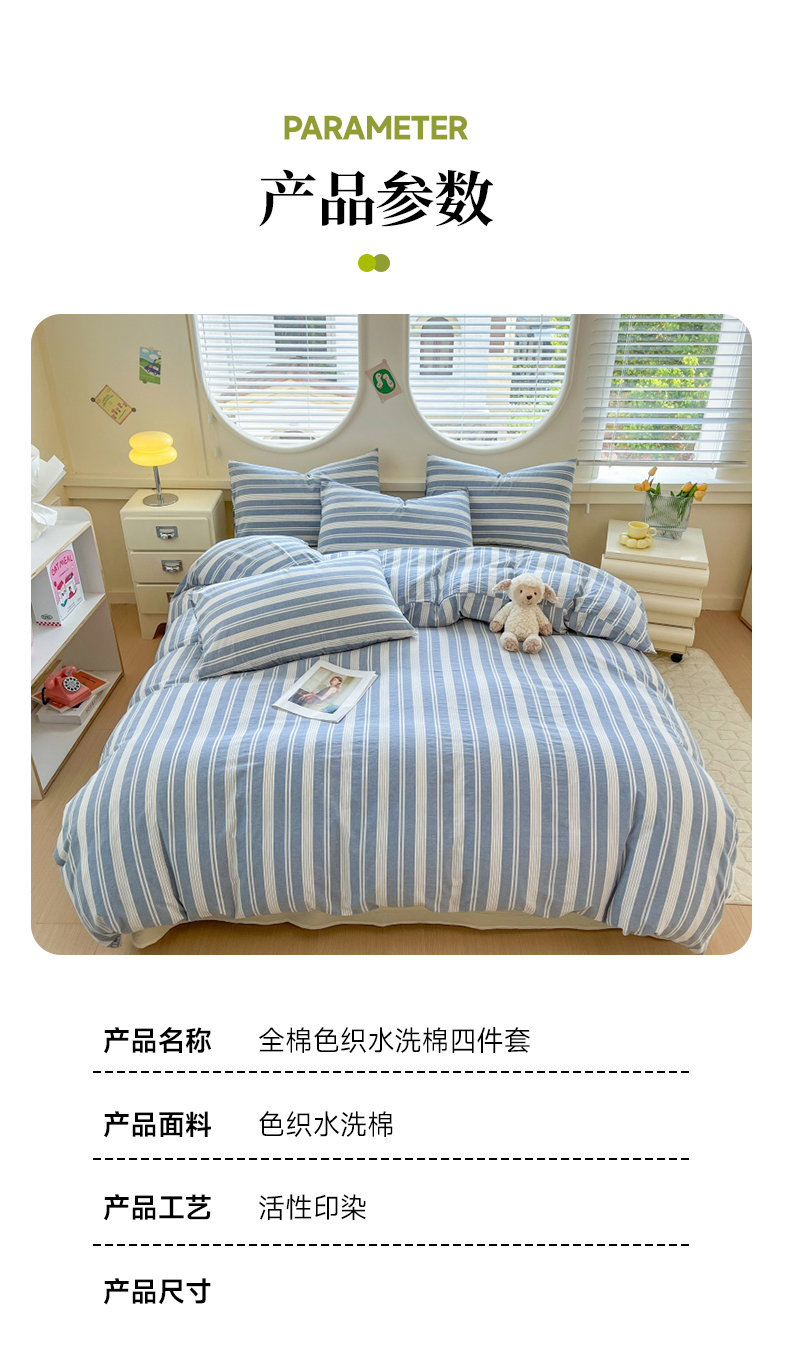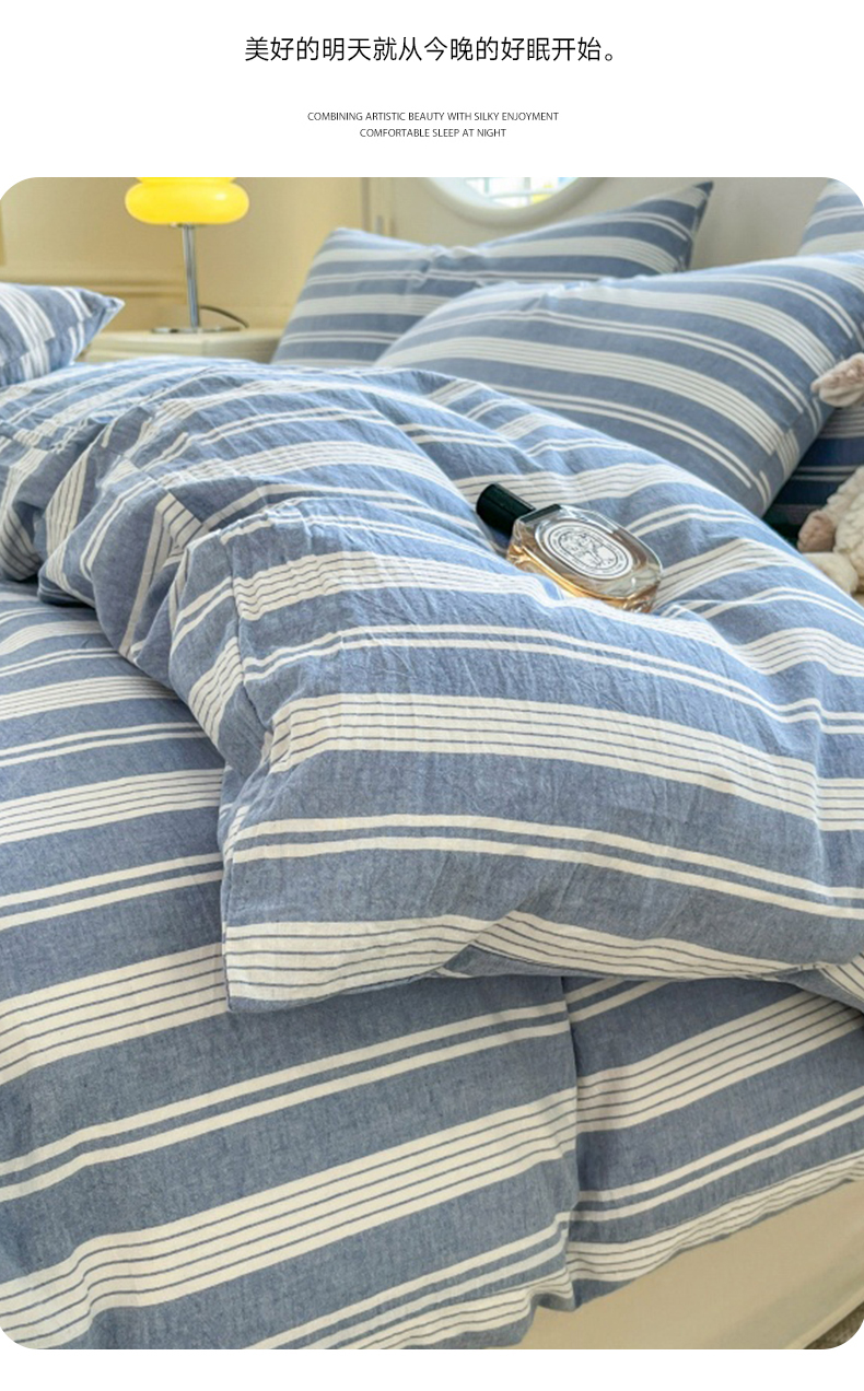 当前位置: 91家纺网 > 商品网购 > 床品套件 > 四件套 > 色织四件套 > 菡宝 【不断货 预留5公分缩水】a类母婴级纯棉全棉色织水洗棉四件套 支持定制定做尺寸 赫本-海盐蓝