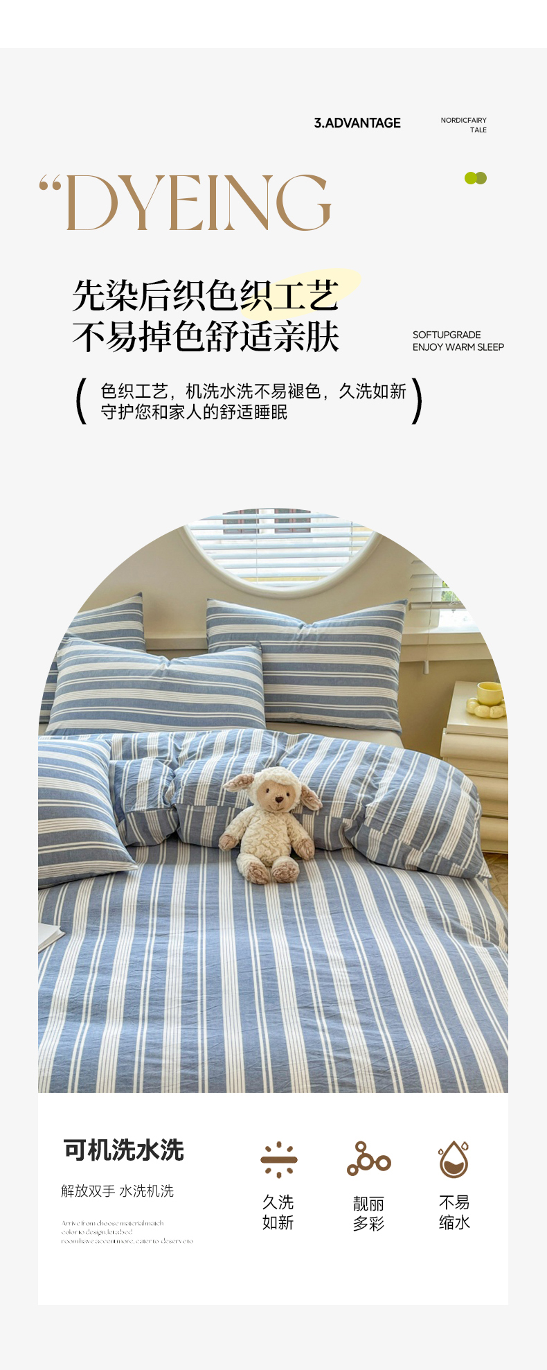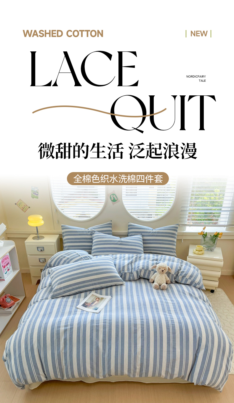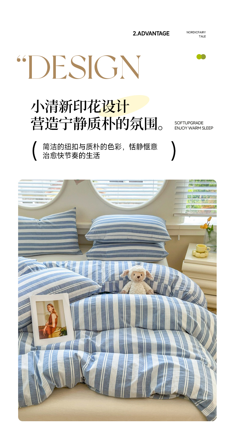 当前位置: 91家纺网 > 商品网购 > 床品套件 > 四件套 > 色织四件套 > 菡宝 【不断货 预留5公分缩水】a类母婴级纯棉全棉色织水洗棉四件套 支持定制定做尺寸 赫本-海盐蓝