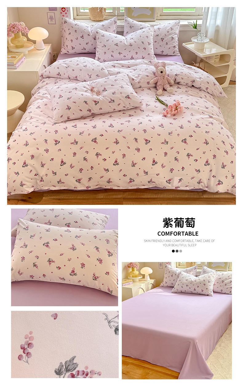 • 91家纺网 家纺一手货源 找家纺 多品家纺 2025新款超柔双层纱水洗棉单被套 紫葡萄