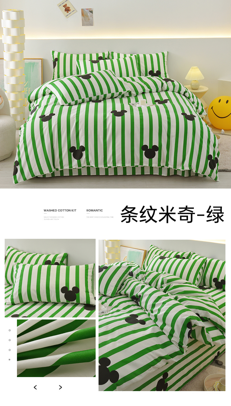 当前位置: 91家纺网 > 商品网购 > 床品套件 > 四件套 > 全棉普通四件套 > 启优家纺 2025新款13372全棉纯棉纯色四件套 条纹米奇-绿