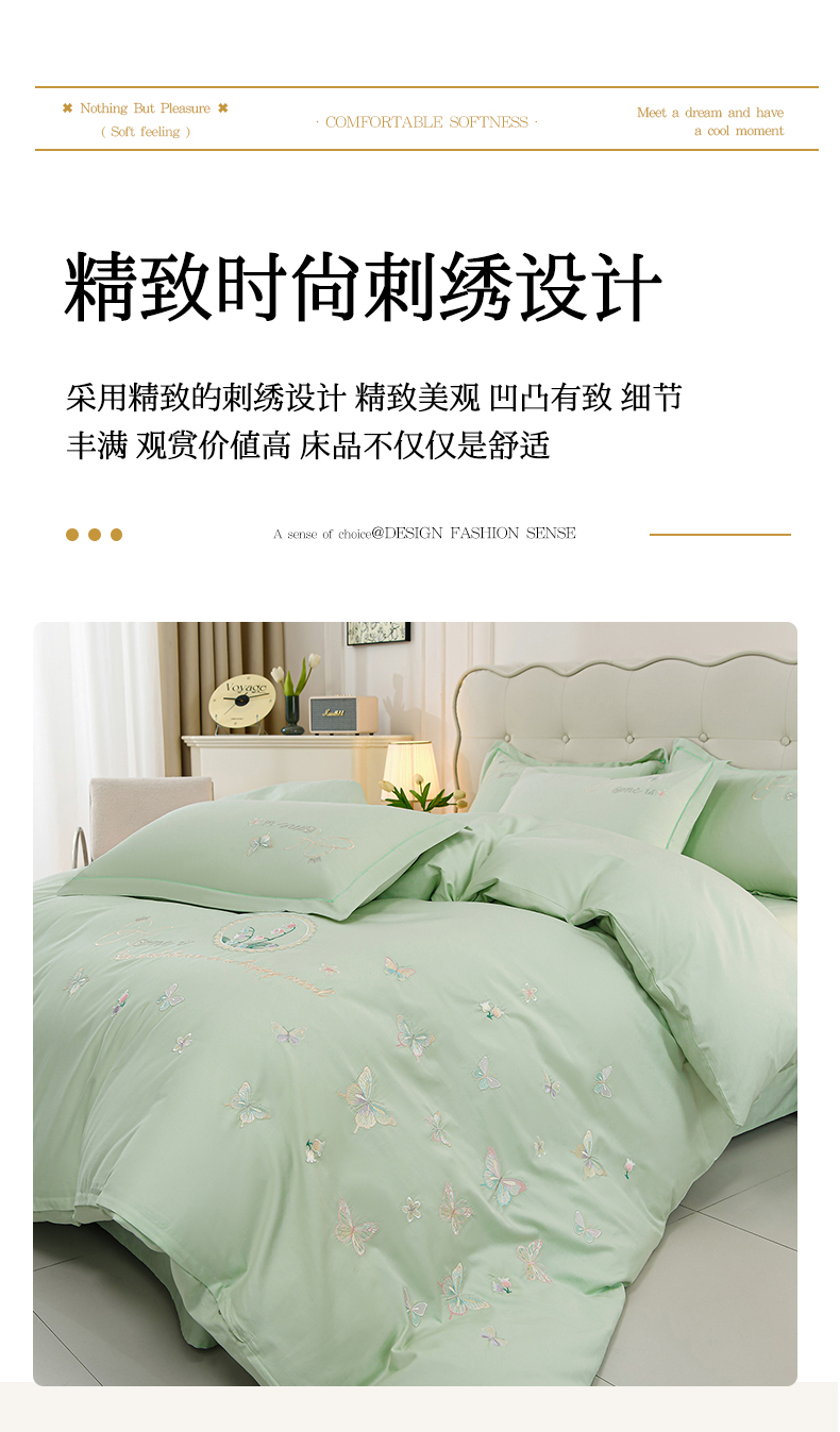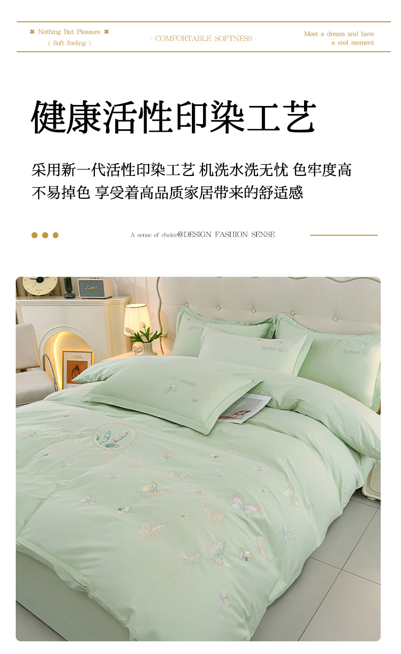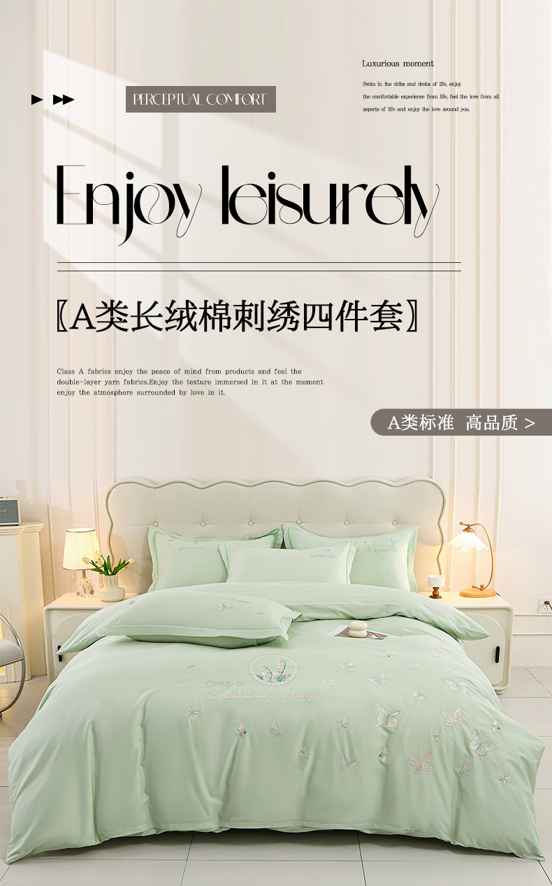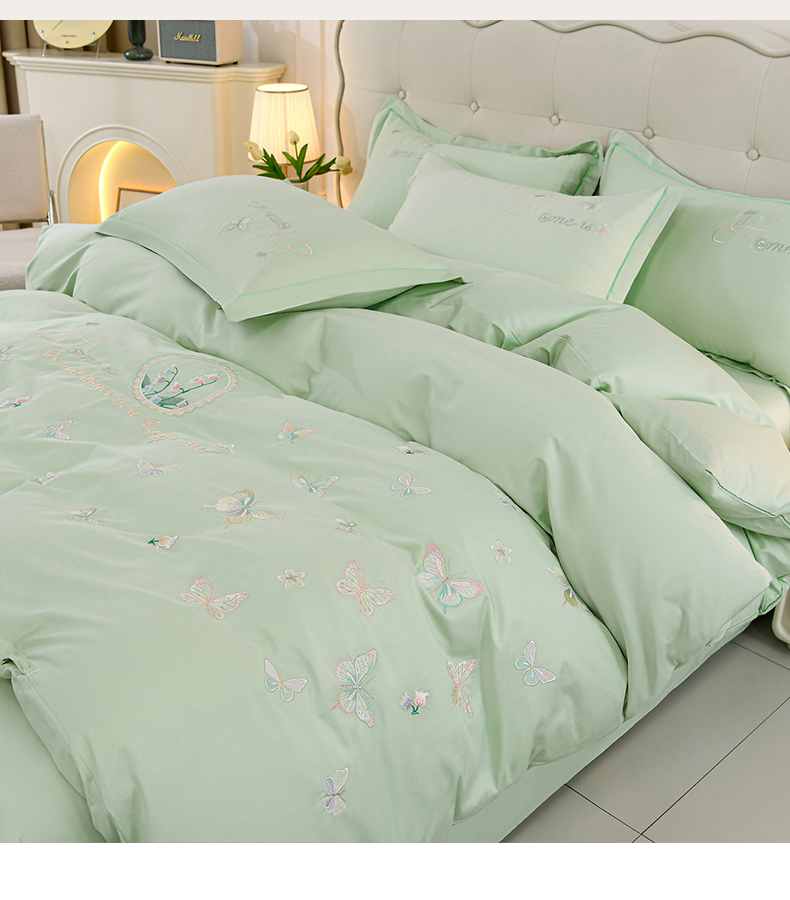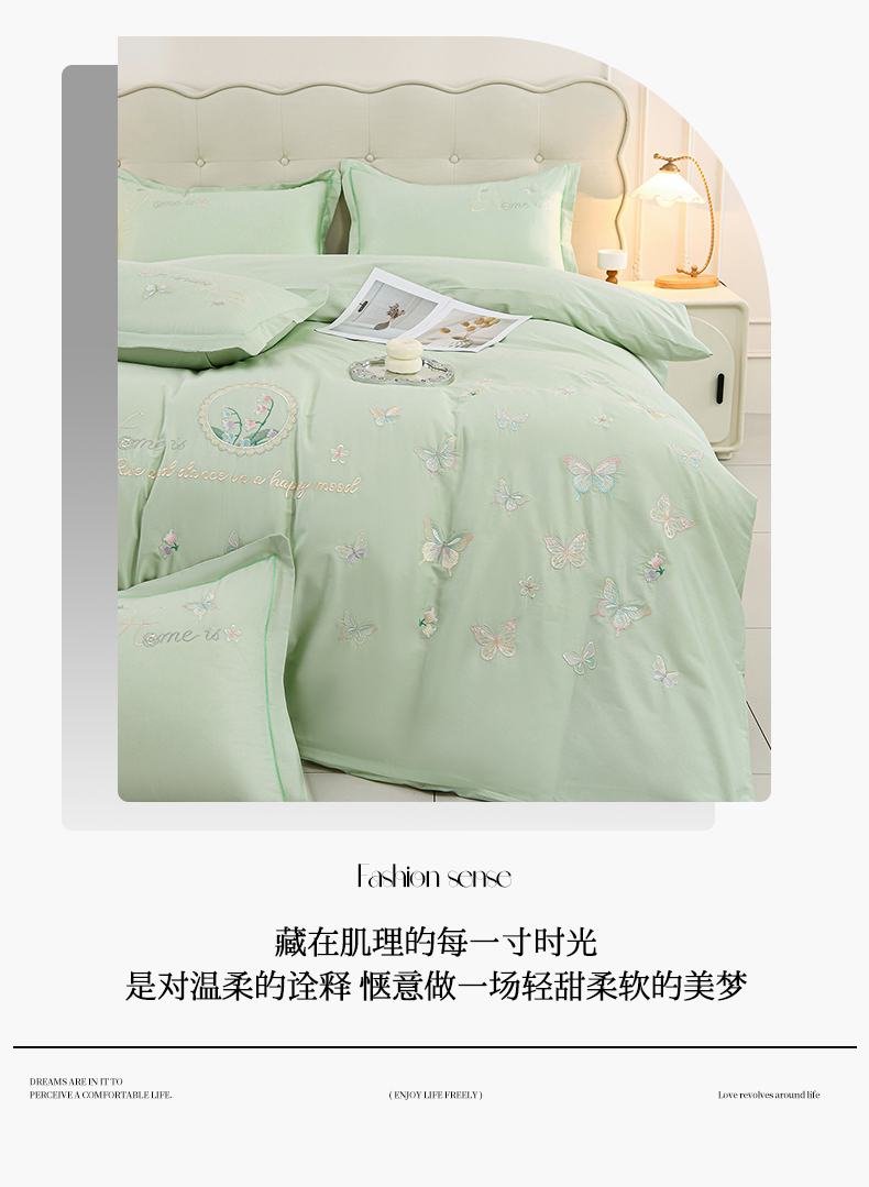 商品名称:登登家纺 2025新款A类长绒棉刺绣四件套-风铃 风铃-青