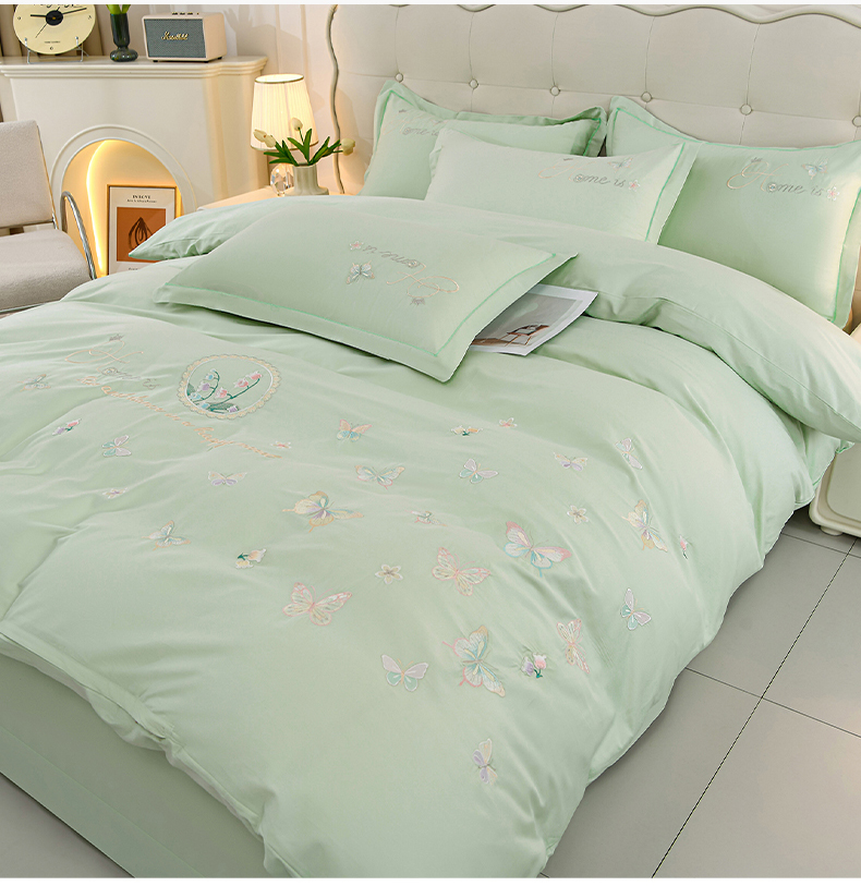 登登家纺 2025新款A类长绒棉刺绣四件套-风铃 风铃-青