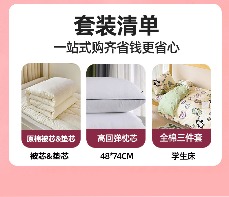 0.9m床五件套 【床单三件套+秋冬被约5斤+枕芯】 | ¥148.00 |