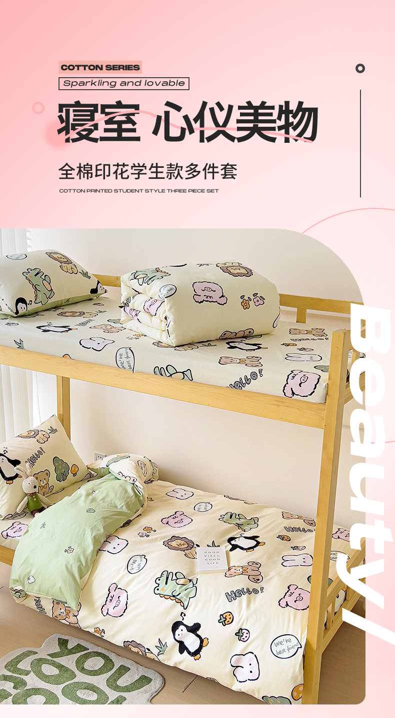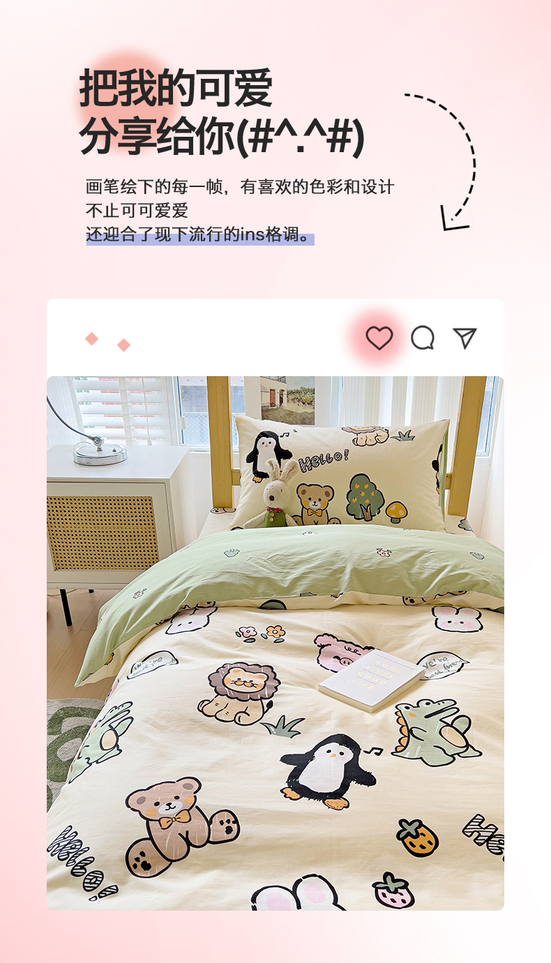 当前位置: 91家纺网 > 商品网购 > 床品套件 > 四件套 > 全棉普通四件套 > 名兮2025新款全棉纯棉13372学生床多件套 动物世界