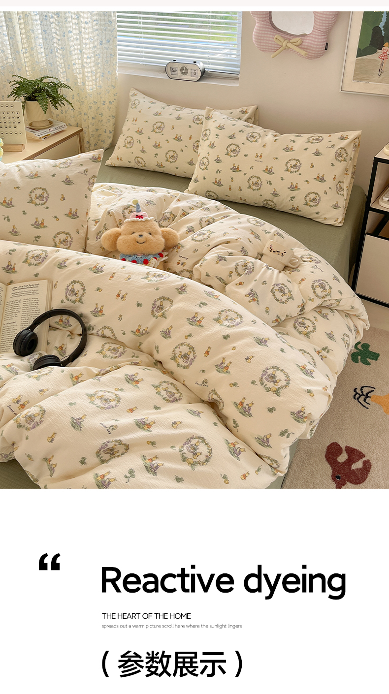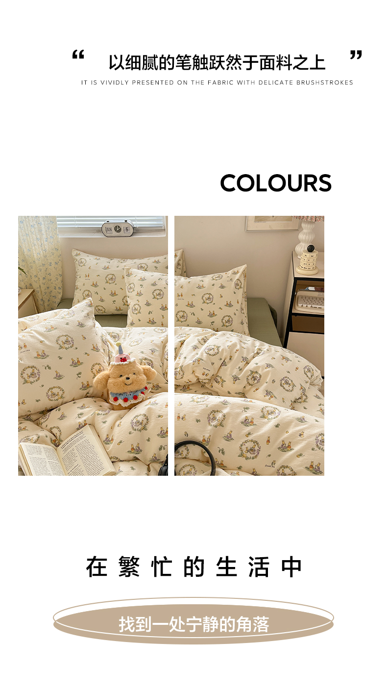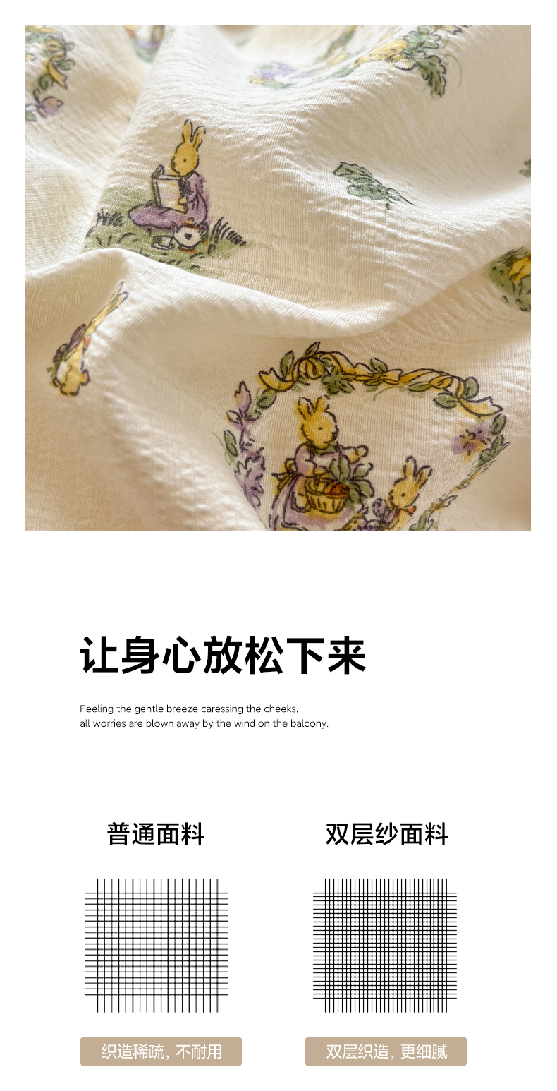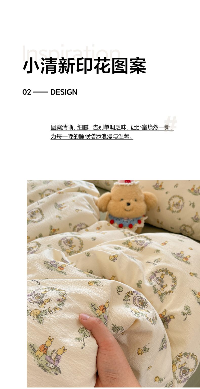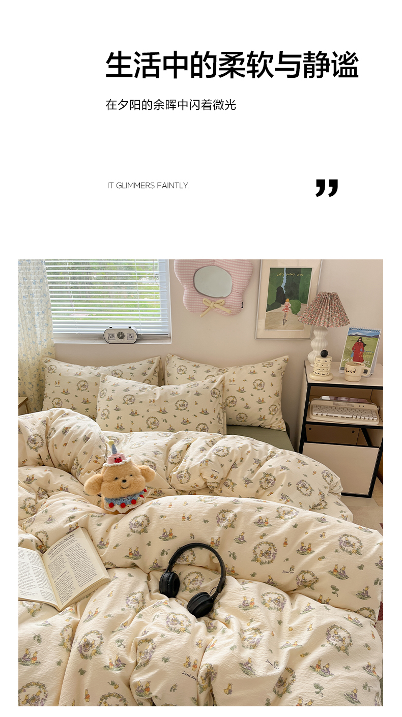 当前位置: 91家纺网 > 商品网购 > 床品套件 > 四件套 > 其它四件套 > 卡迪熊家纺 2025新款超柔云感m印花双层纱四件套 兔兔诗园