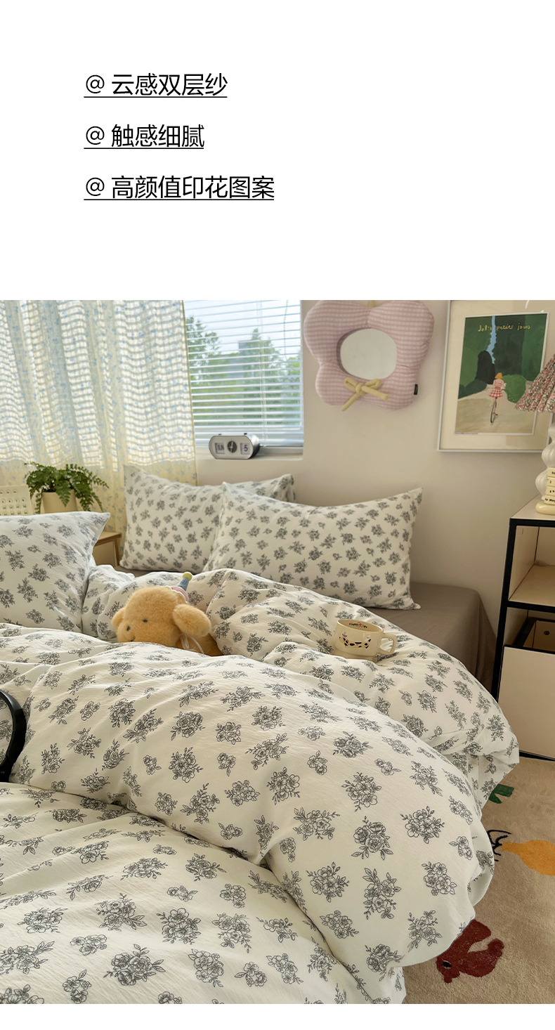 当前位置: 91家纺网 > 商品网购 > 床品套件 > 四件套 > 其它四件套 > 彩韵家纺 2025新款超柔云感m印花双层纱四件套 桃花朵朵