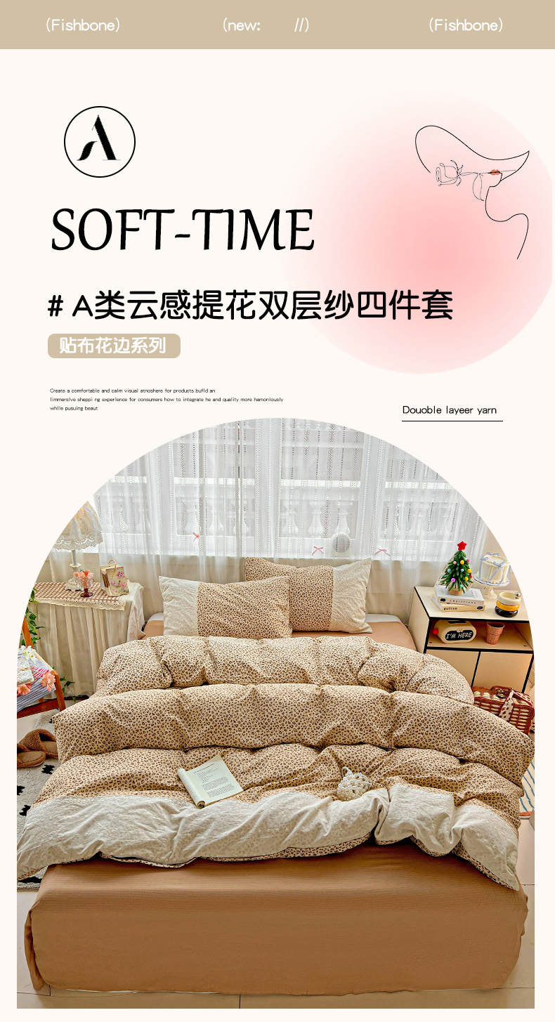 商品名称:(总)喜颜 2025新款云感木棉双层纱贴布花边爆款四件套