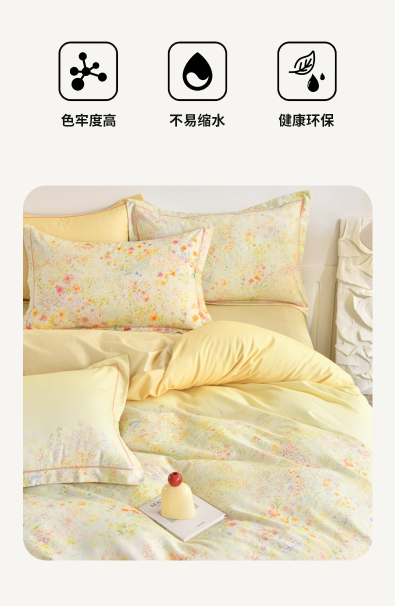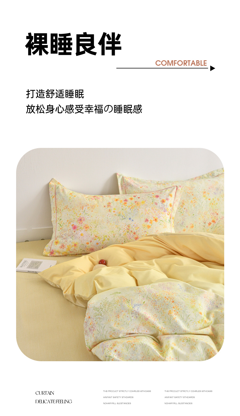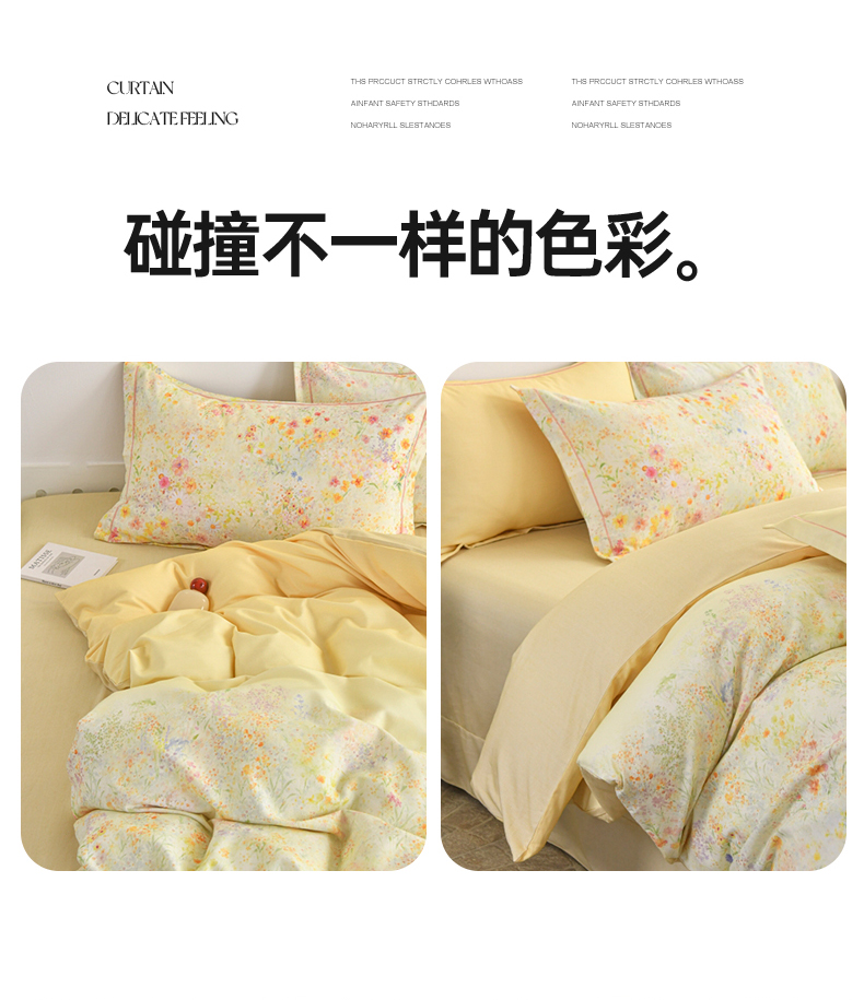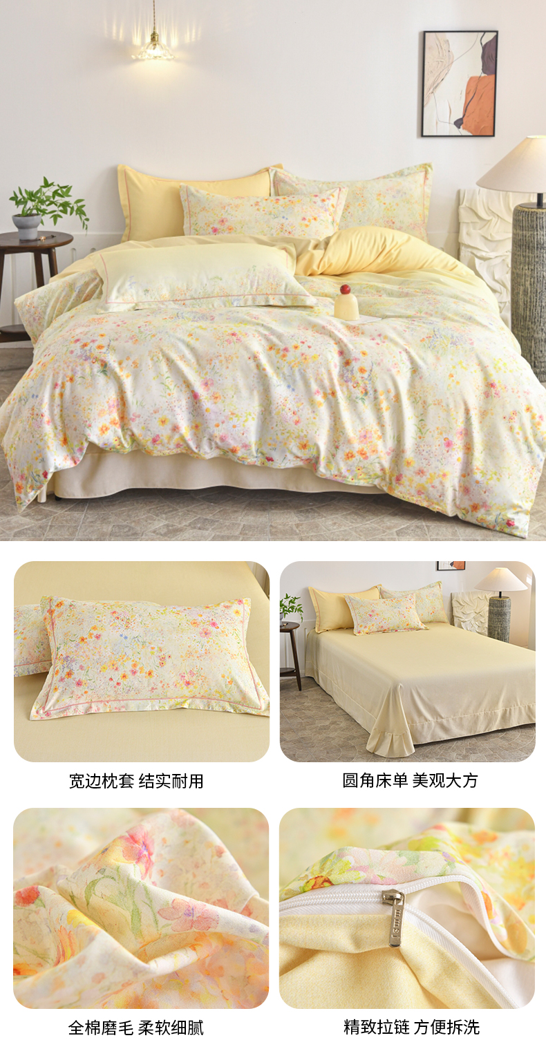 商品名称:磨毛世家家纺2025新款金太阳铂金四件套加厚四件套 蔓丘-黄