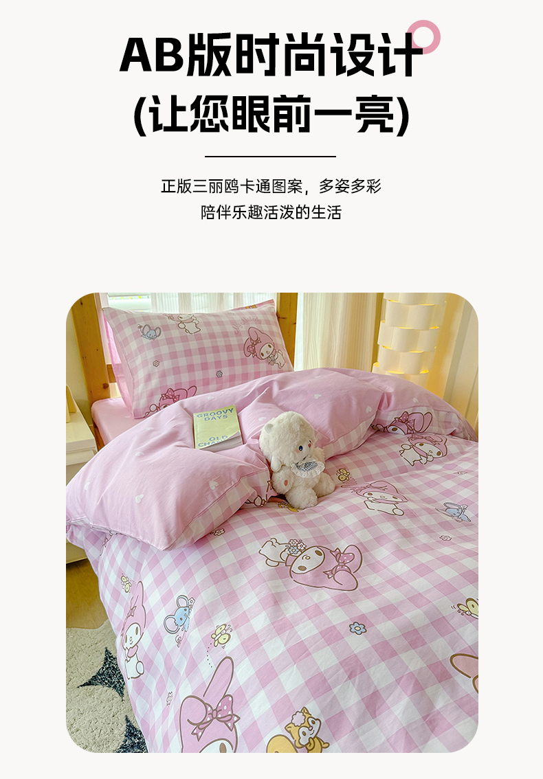 (总)玉元坊 2026新款正版授权三丽鸥系列全棉纯棉床单四件套学生三件套-美乐蒂系列,粉格美乐蒂【简约款】,乖乖美乐蒂【简约款】,蝴蝶结美乐蒂【简约款】,开心美乐蒂【简约款】,可可美乐蒂【简约款】,魔法美乐蒂【简约款】,甜甜美乐蒂【简约款】,小兔美乐蒂【简约款】