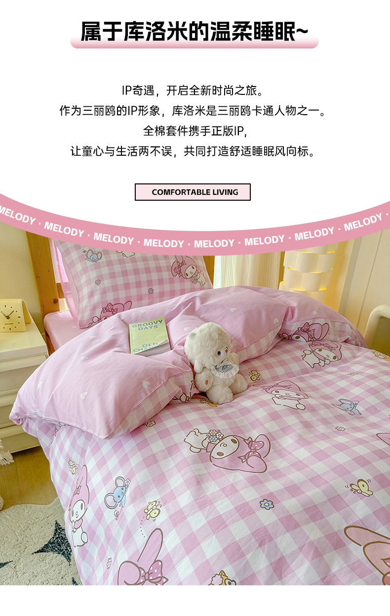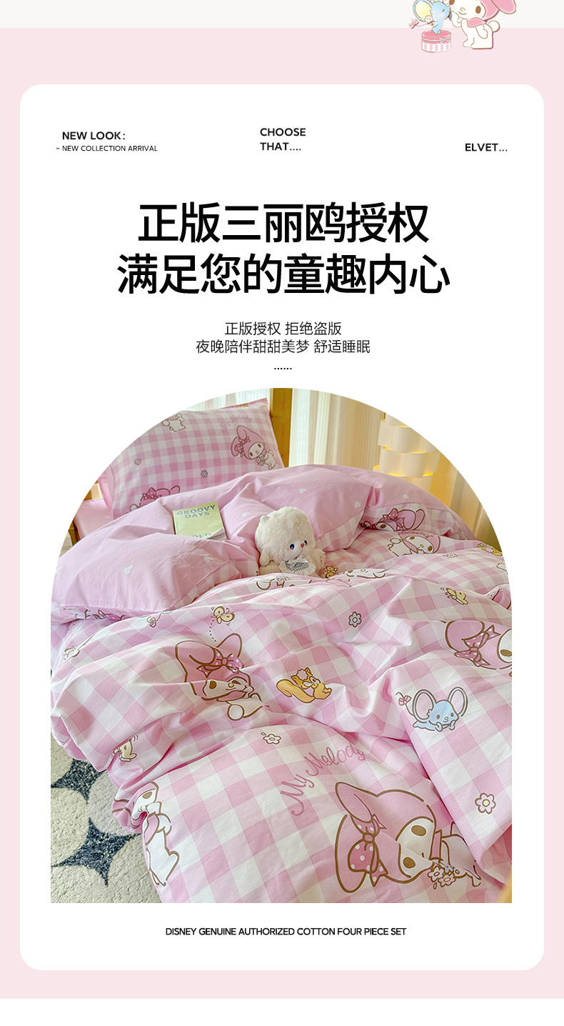 (总)玉元坊 2025新款正版授权三丽鸥系列全棉纯棉三四件套 基础款,蛋糕美乐蒂-基础款,粉兔草莓-基础款,粉兔亲亲-基础款,糖果美乐蒂-基础款,甜品美乐蒂-基础款,甜筒美乐蒂-基础款,甜心美乐蒂-基础款,玩偶美乐蒂-基础款,星黛美乐蒂-基础款