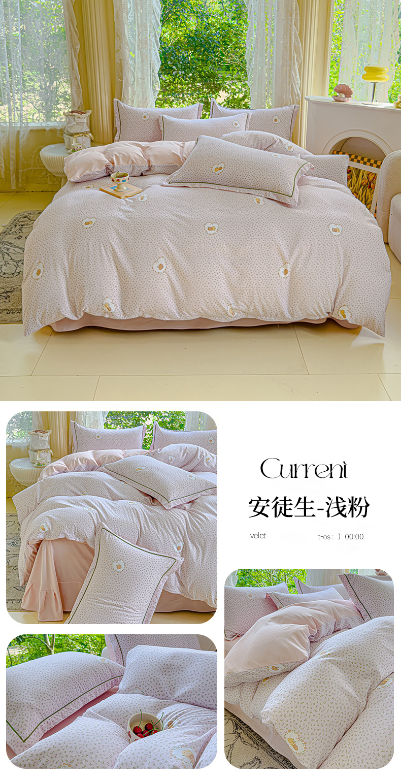 可思家纺 2025新款云柔棉四件套 安徒生-浅粉