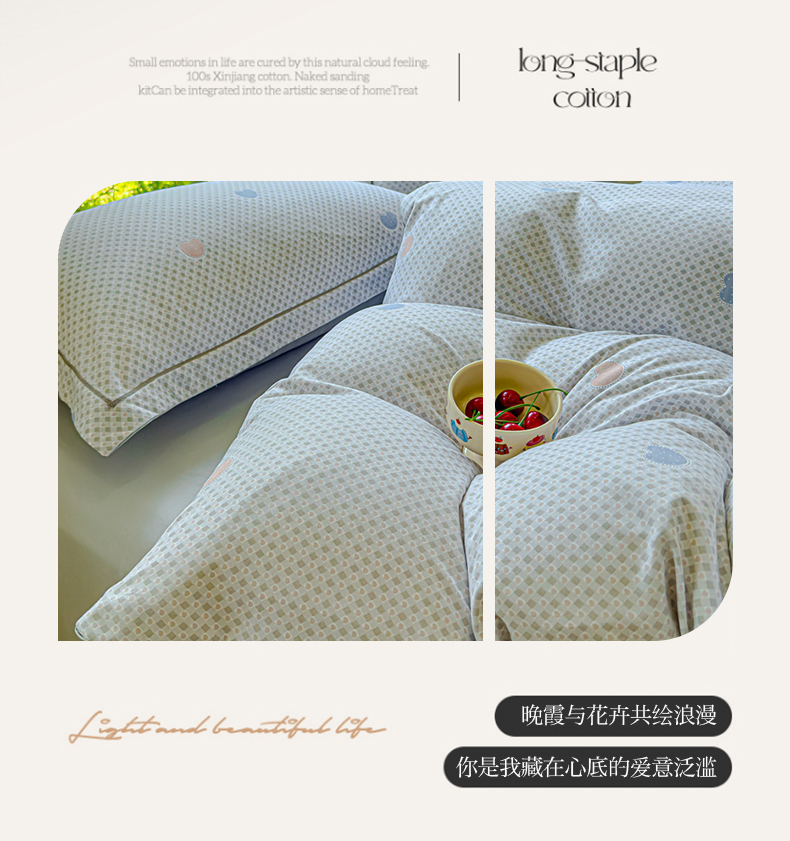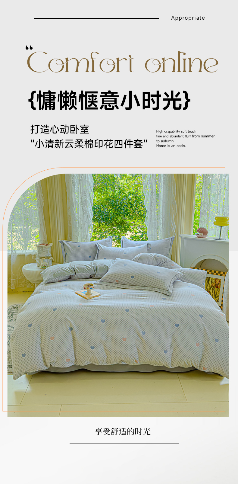 可思家纺 2025新款云柔棉四件套 梦幻心心