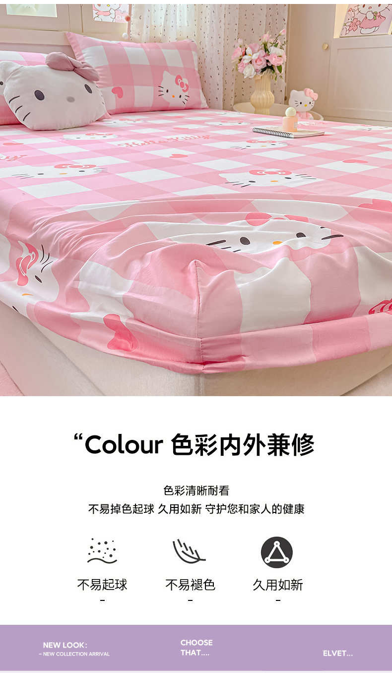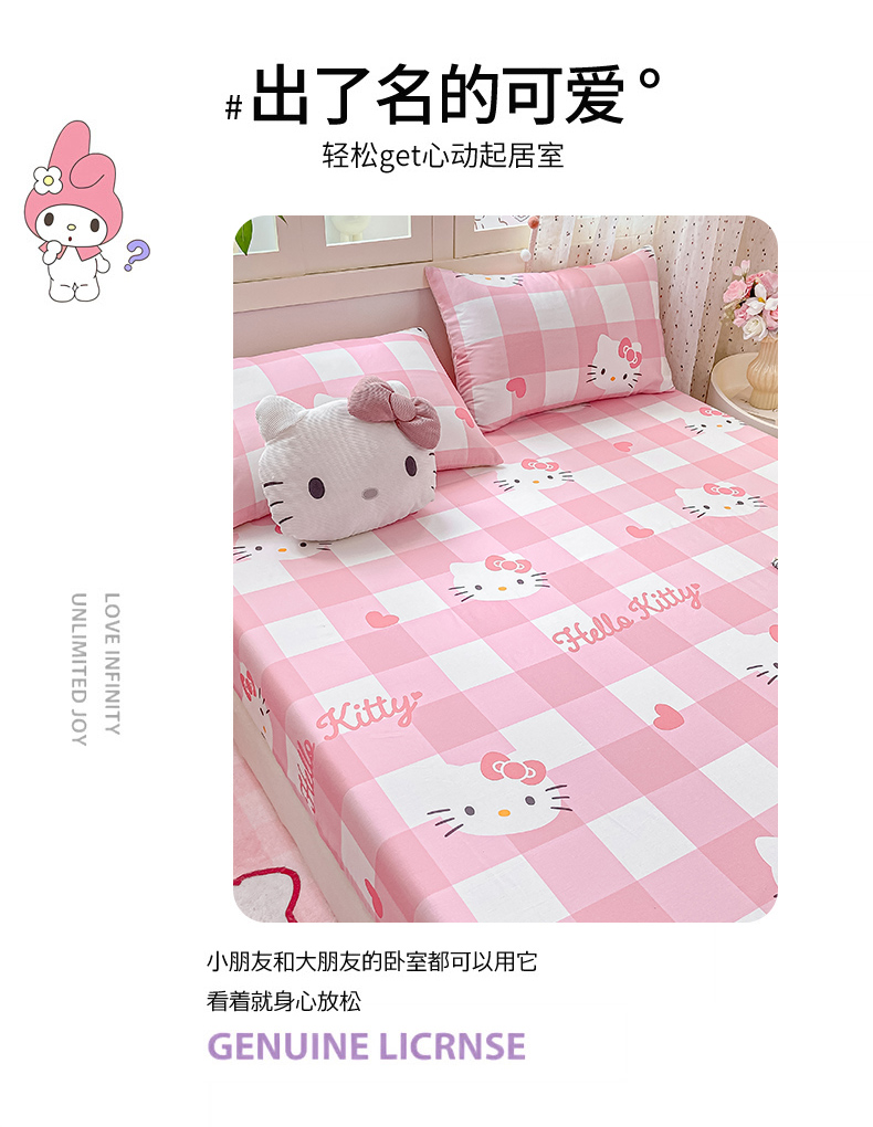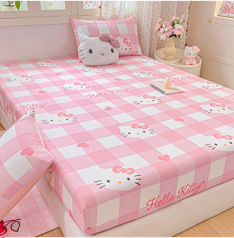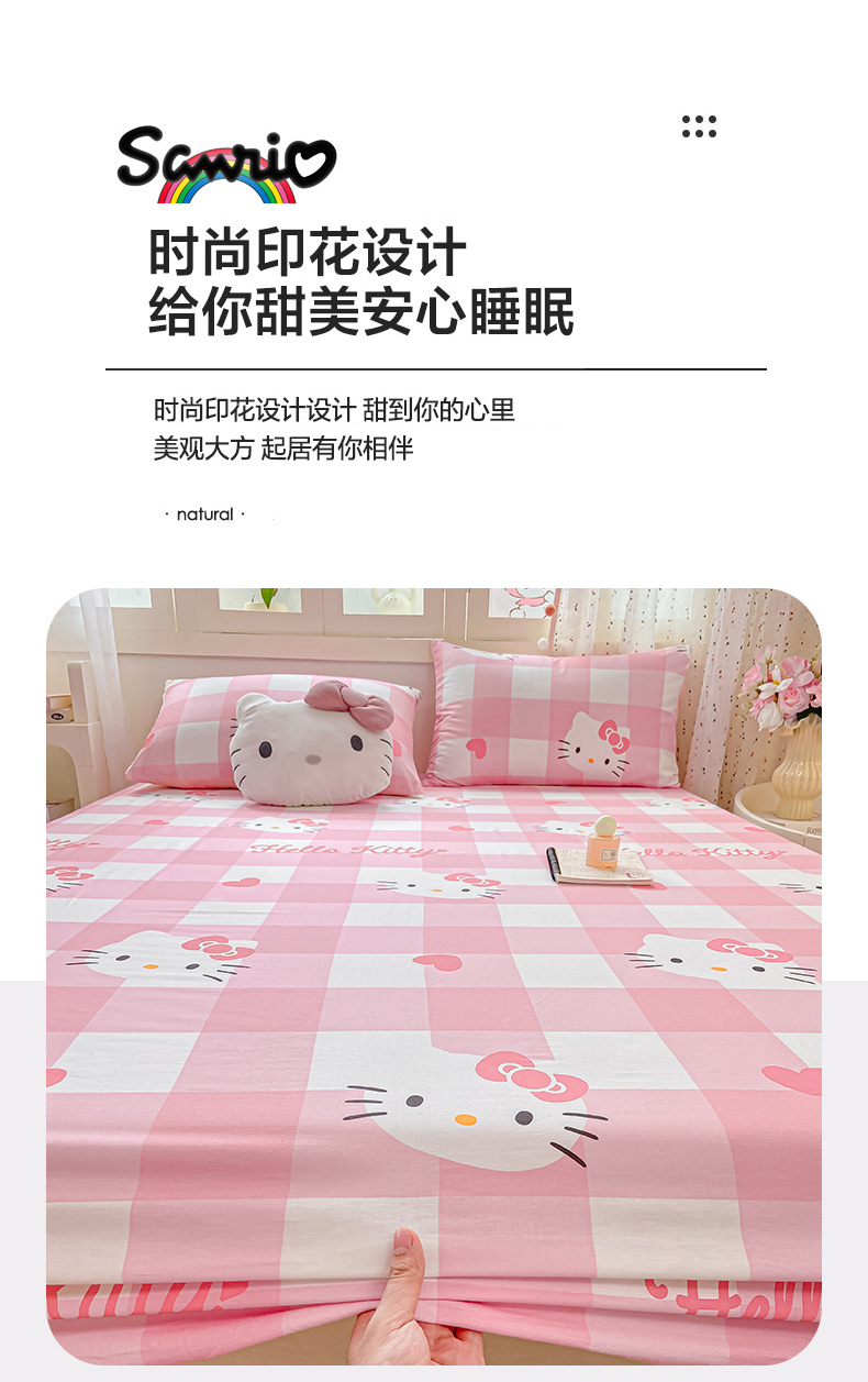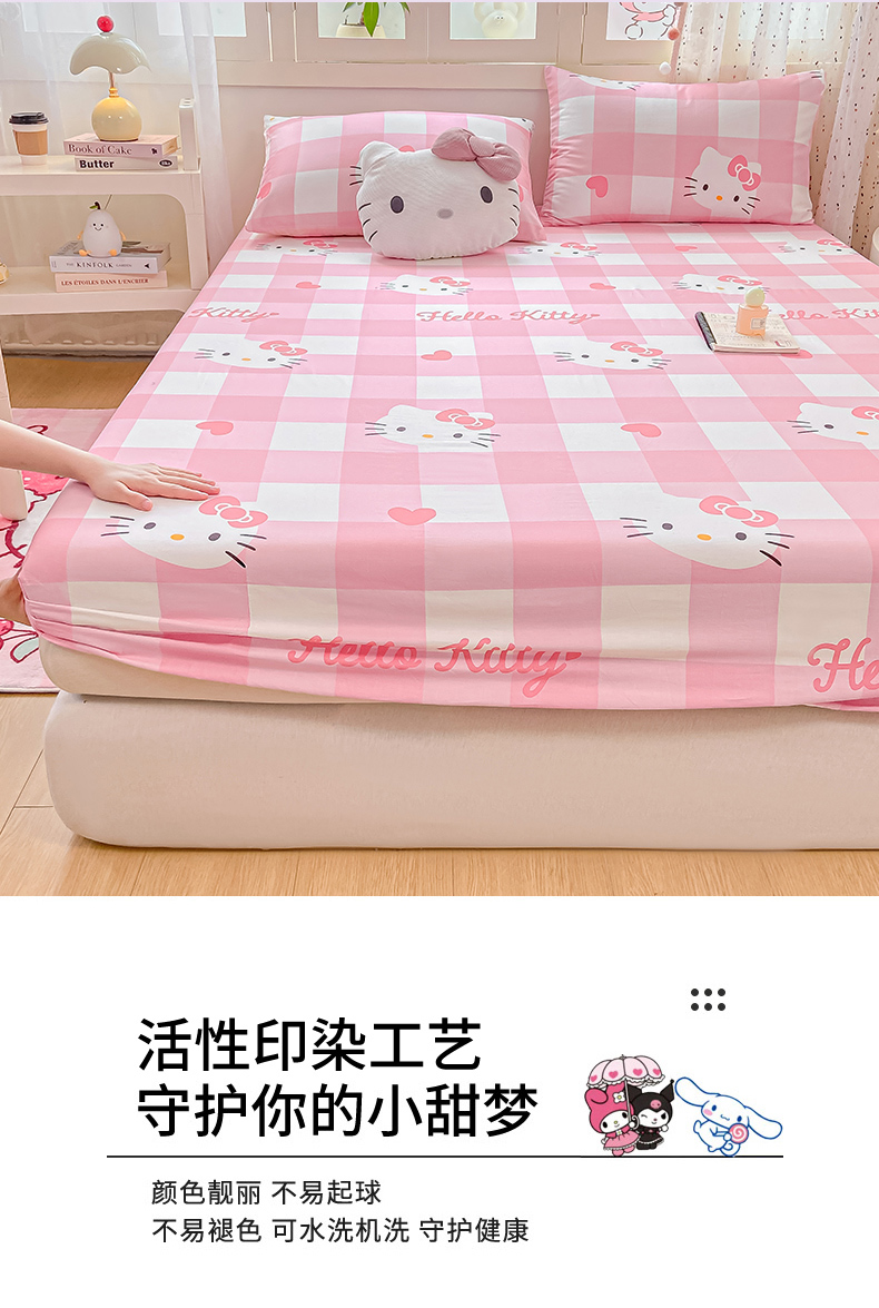 • 91家纺网 家纺一手货源 找家纺 博雅 2025春夏新款三丽欧小版全棉纯棉单品床笠床笠单件单床笠 大粉格KT猫