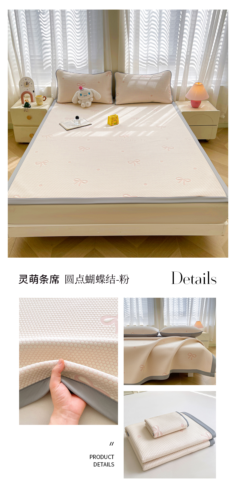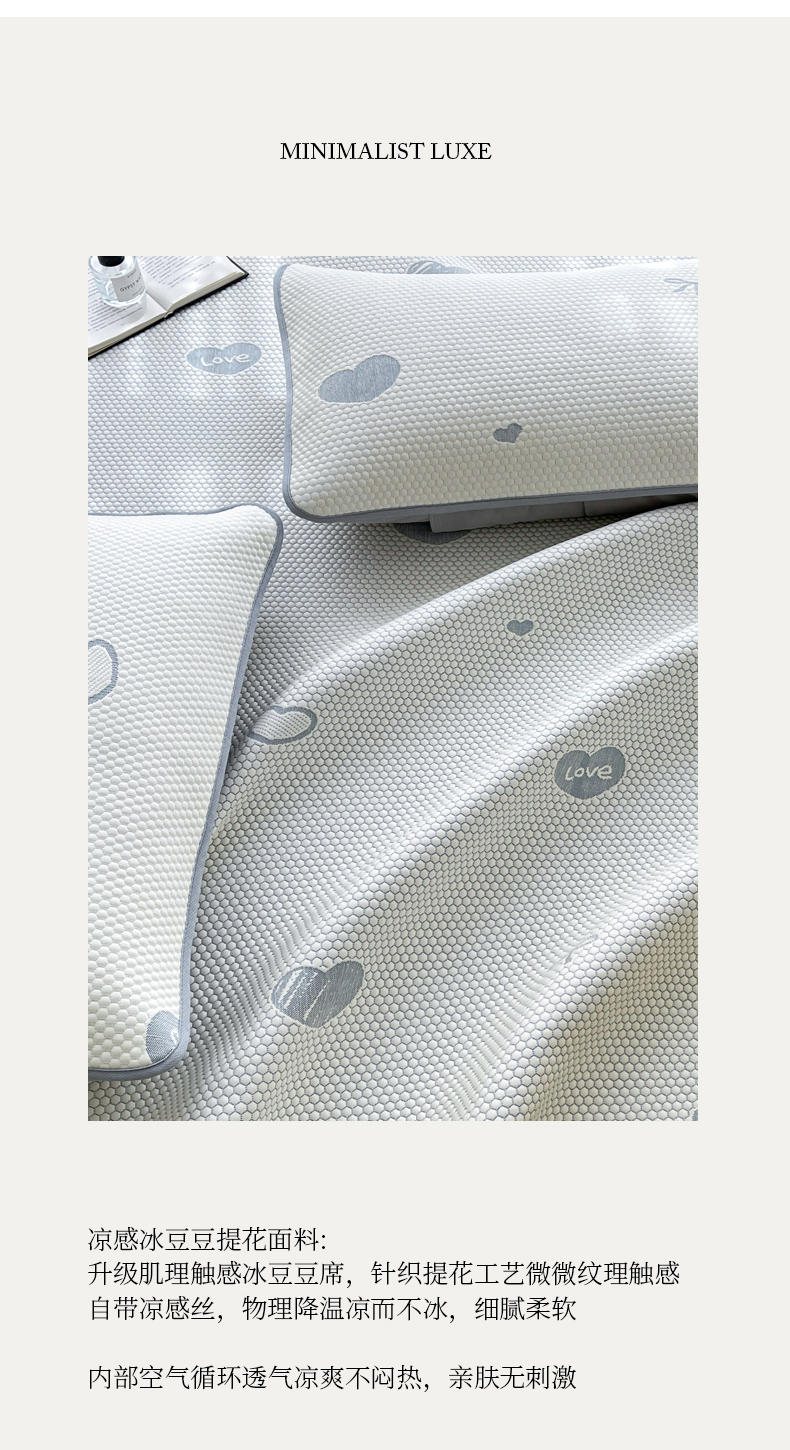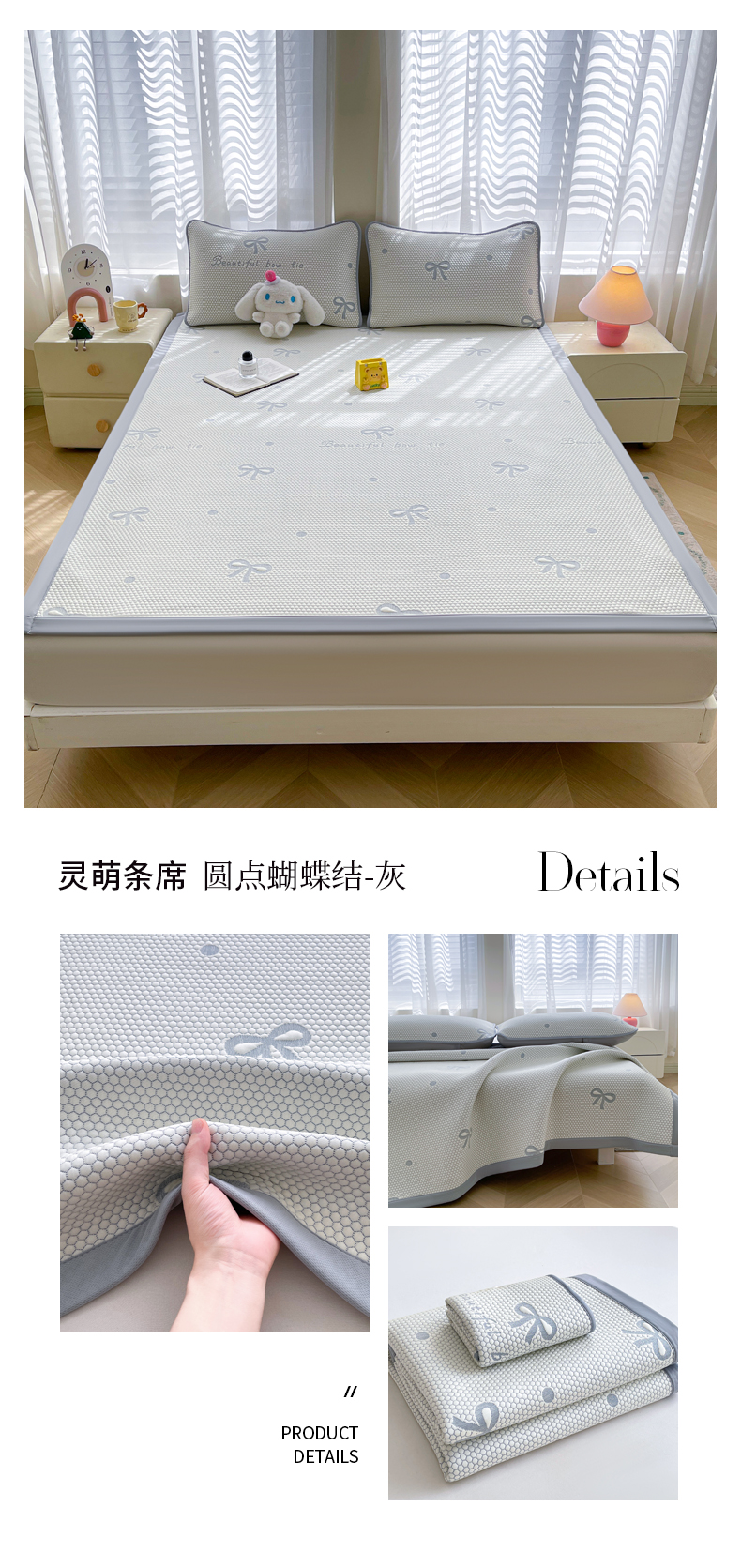 • 91家纺网 家纺一手货源 找家纺 小叮当家纺仓储工厂店 2025新款冰豆豆凉席冰丝席凉豆豆凉席-灵萌系列-床席款 灵萌条席-云朵星星-灰