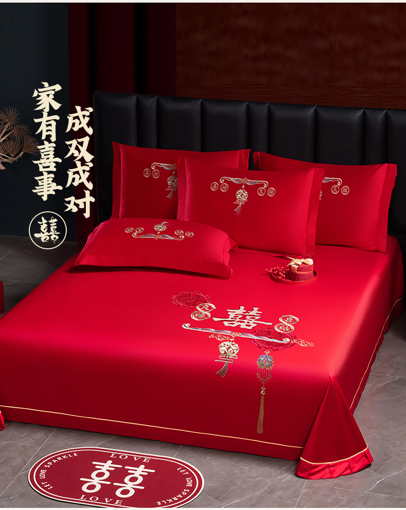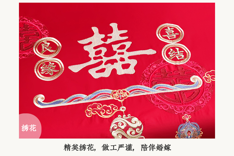(总)千禧家纺 2024新款双面长绒棉磨毛加厚保暖绣花婚庆套件,大喜大吉,鸿运贺禧,欢乐喜事,欢喜,美满爱情,喜上眉梢,喜约,相伴一生,挚爱