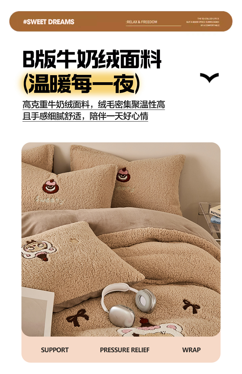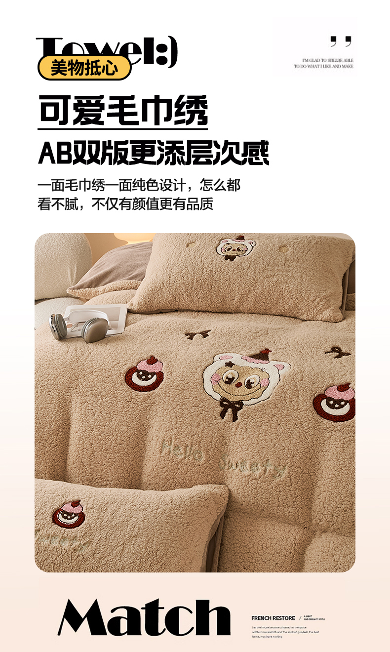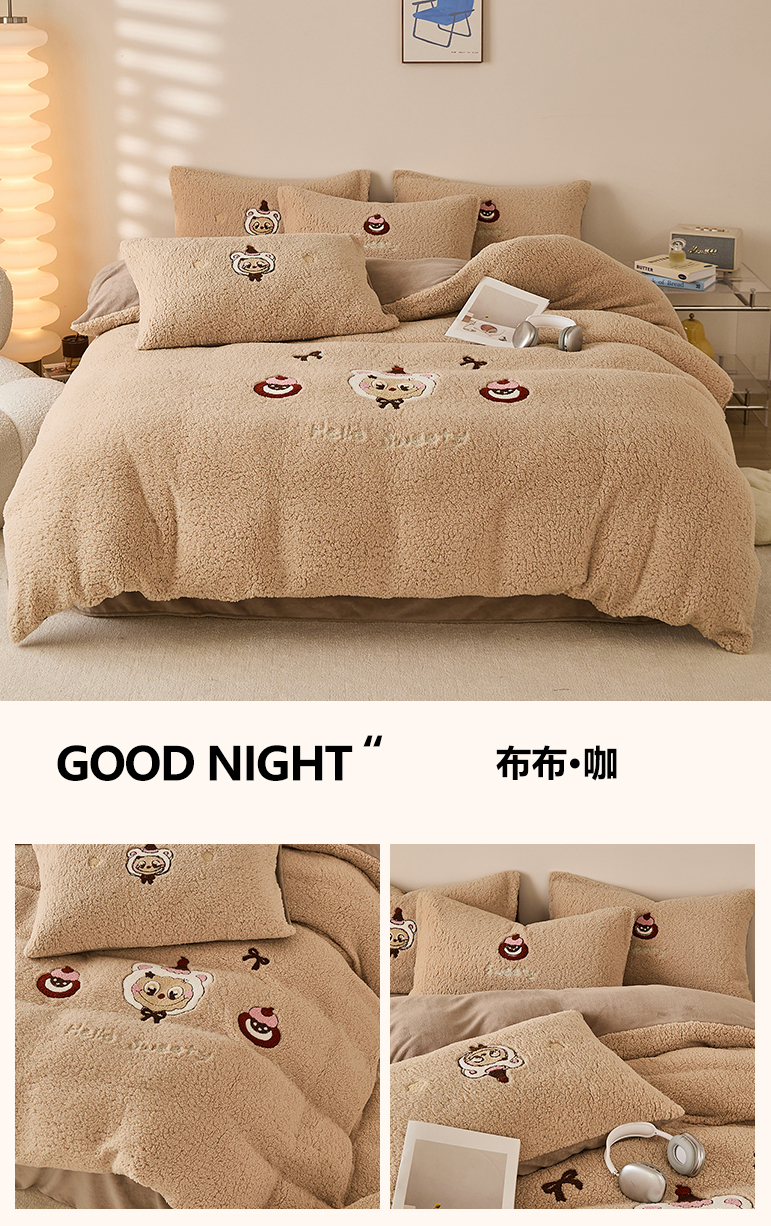 当前位置: 91家纺网 > 商品网购 > 床品套件 > 四件套 > 牛奶绒四件套 > 曼町家居 2025新款羊羔绒牛奶绒毛巾绣四件套 布布·咖