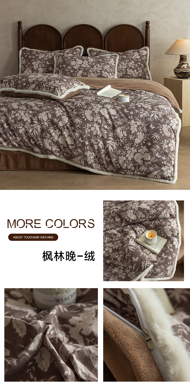 商品名称:迷尚家居 2025新款复古色织棉麻牛奶绒棉加绒四件套 枫林晚-绒