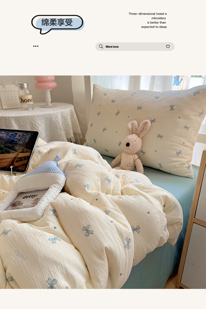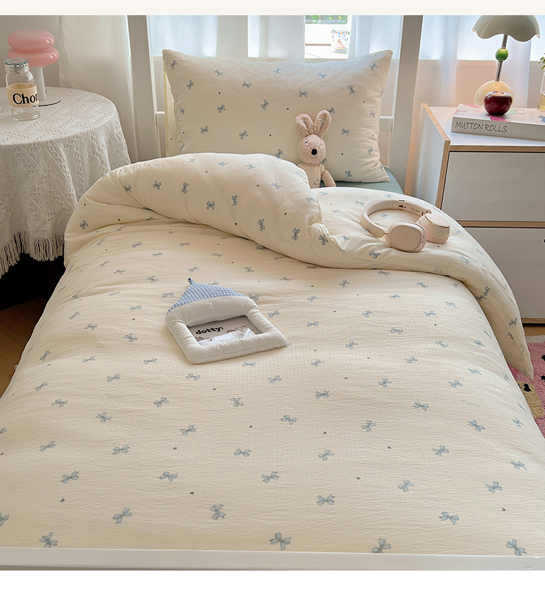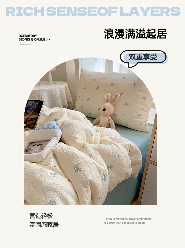 当前位置: 91家纺网 > 商品网购 > 床品套件 > 四件套 > 双层纱四件套 > 韩巢家纺 2025新款双层纱学生季床铺单件被套宿舍寝室上下铺三件套 兰相思