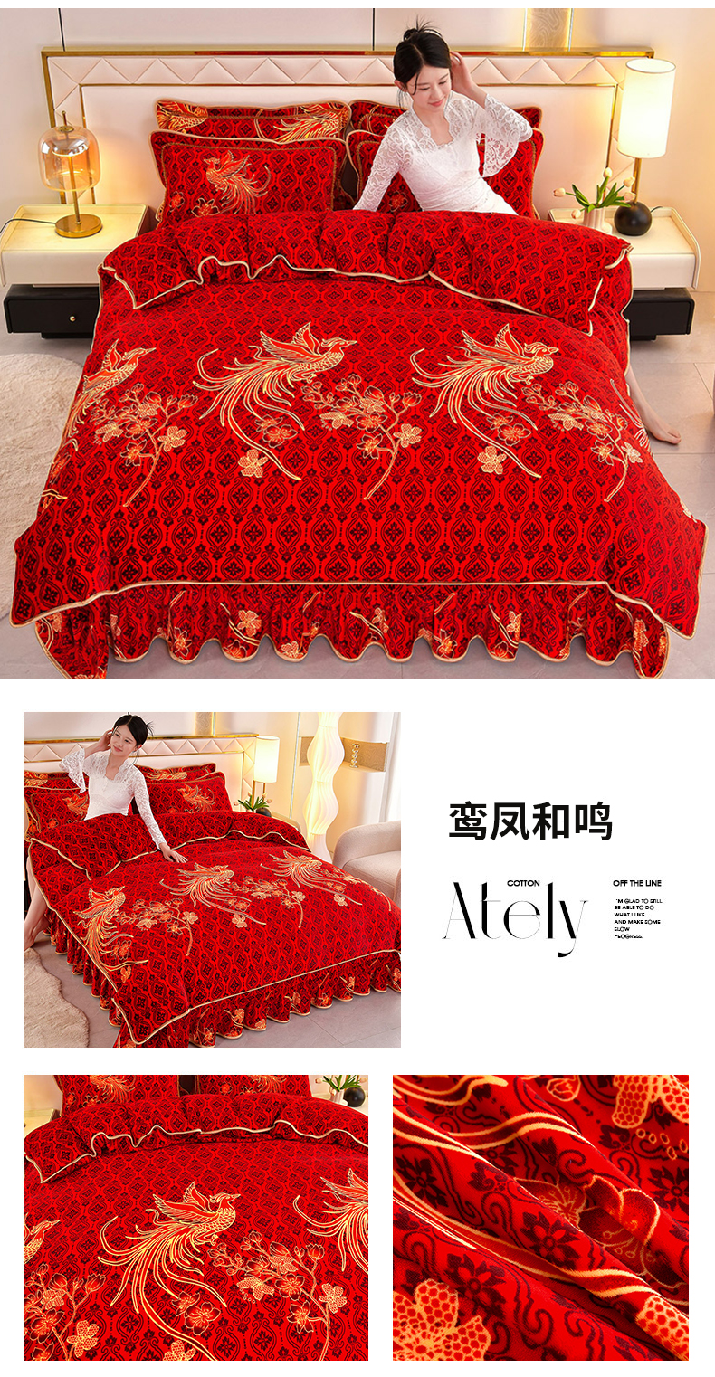 硕喜 2025新款新8.5斤法莱绒四件套珊瑚牛奶金貂绒四件套床裙款 多彩人生,多彩人生