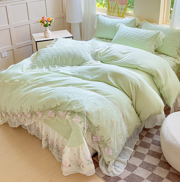 (总)漫布云 2025新款230g高克重韩版立体盘花牛奶蚕丝绒绣花四件套床裙款被套-洛丽塔系列,洛丽塔-嫩黄 ,洛丽塔-香芋紫 , 洛丽塔-珍珠粉,洛丽塔-婴儿蓝