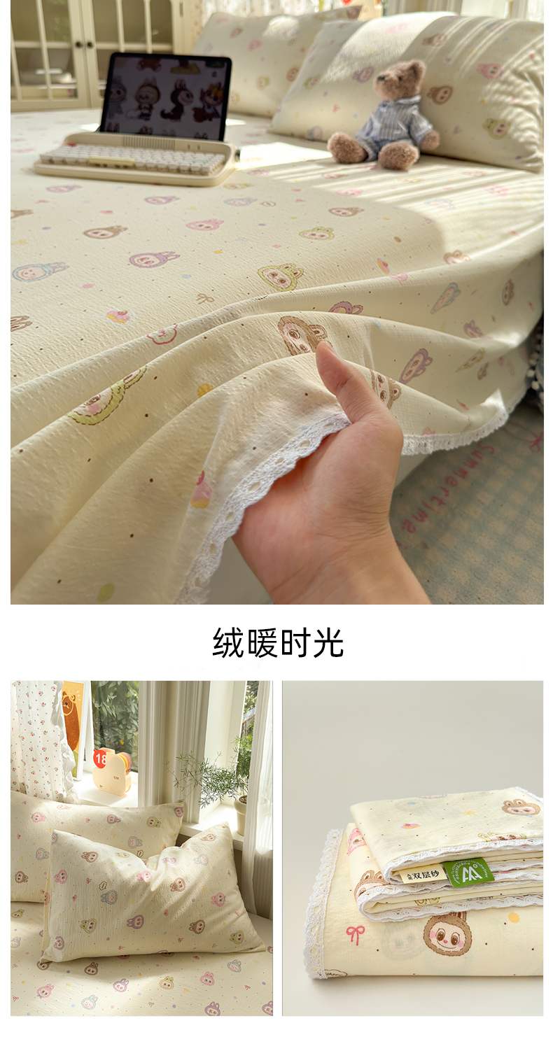 沐芷 2025 A类双层纱花边床单单件 单人双人床单三件套 组合图