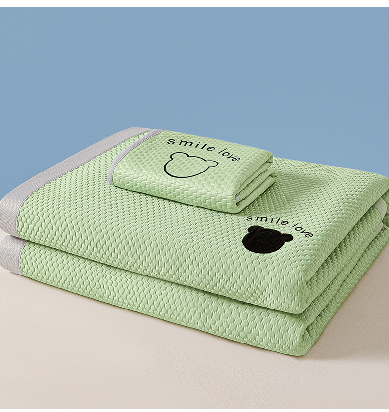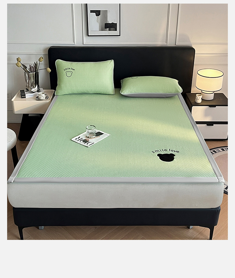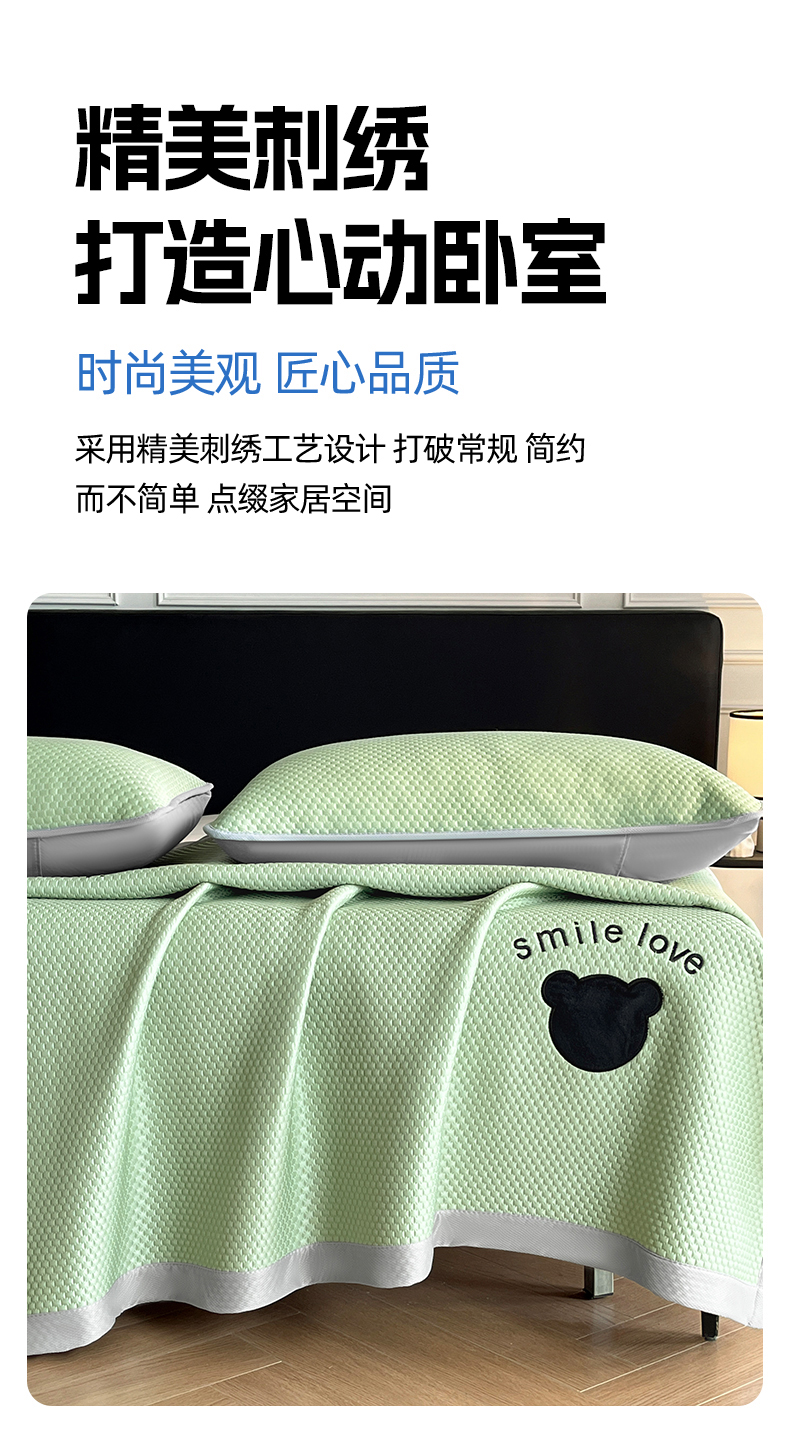 商品名称:奇丝雅 2025新款冰豆豆凉席冰丝床单单件冰丝席家用单人学生宿舍上下铺寝室-成人款 八宝熊 -绿