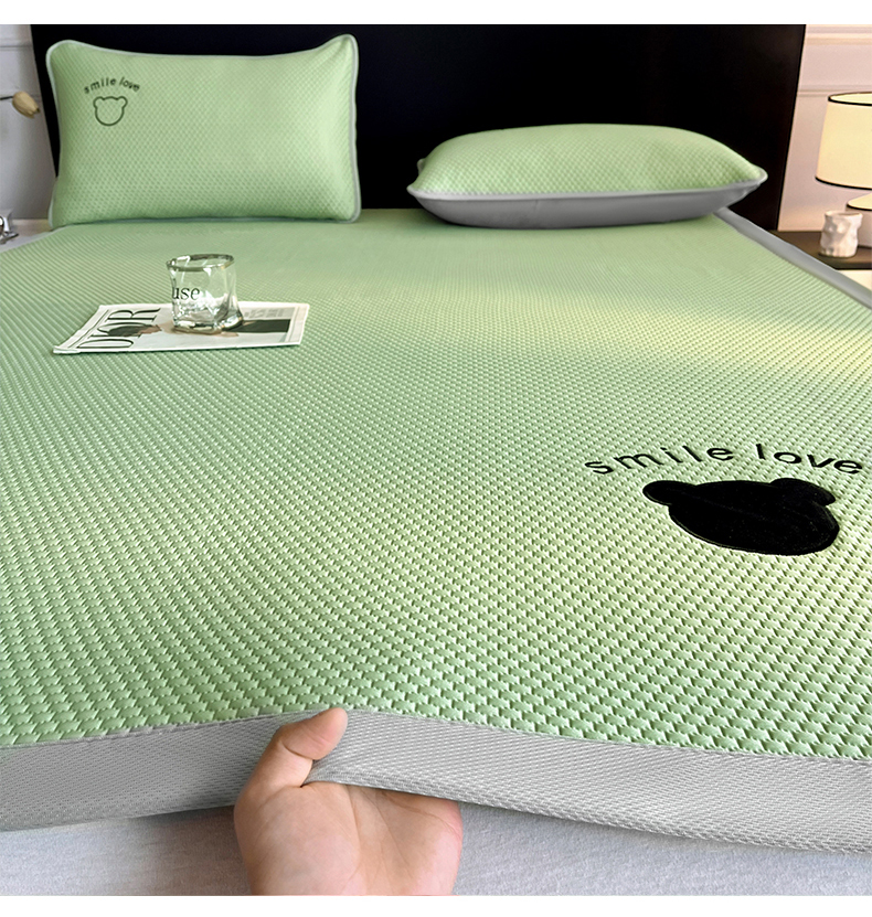 奇丝雅 2025新款冰豆豆凉席冰丝床单单件冰丝席家用单人学生宿舍上下铺寝室-成人款 八宝熊 -绿