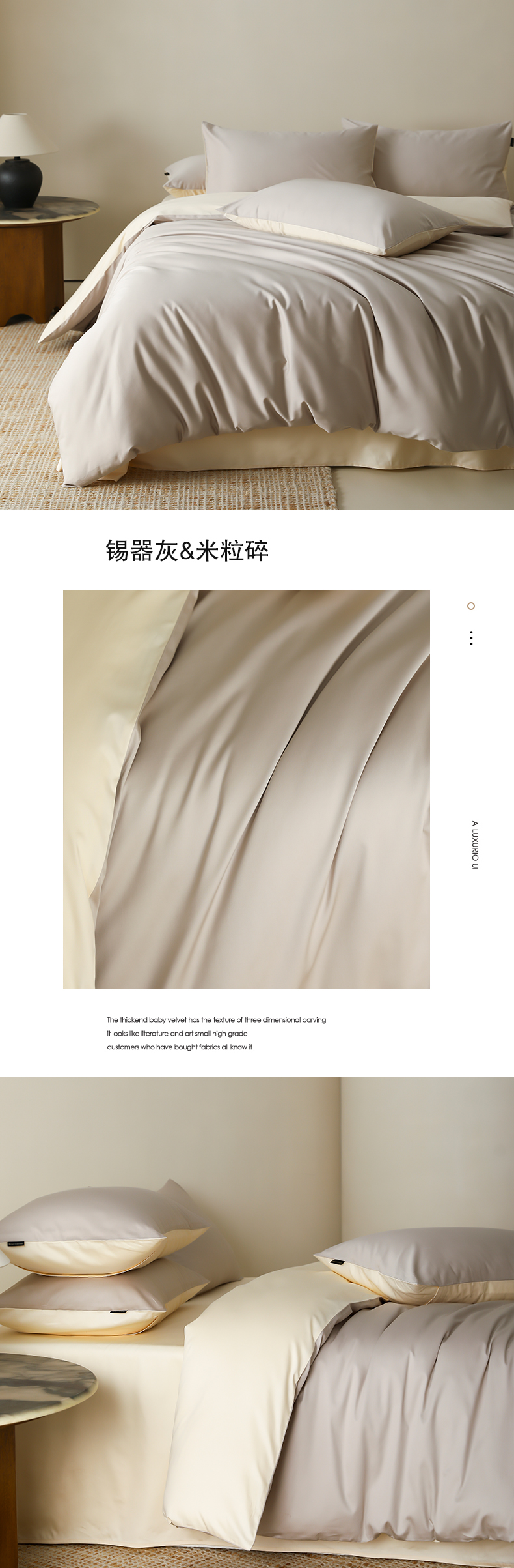 (总)云栖家居 2025秋冬新款50支纯色双拼加厚全棉磨毛被套刺绣100S纯棉四件套-小蝴蝶系列,粉灰,粉紫,蓝灰,米玉,月光黄