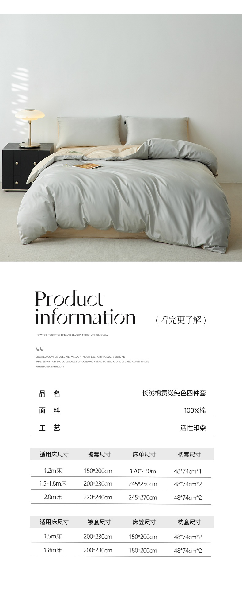 商品名称:麦田家纺 2025新款100S长绒棉贡缎纯色四件套(提供买家秀) 高级灰-棕灰