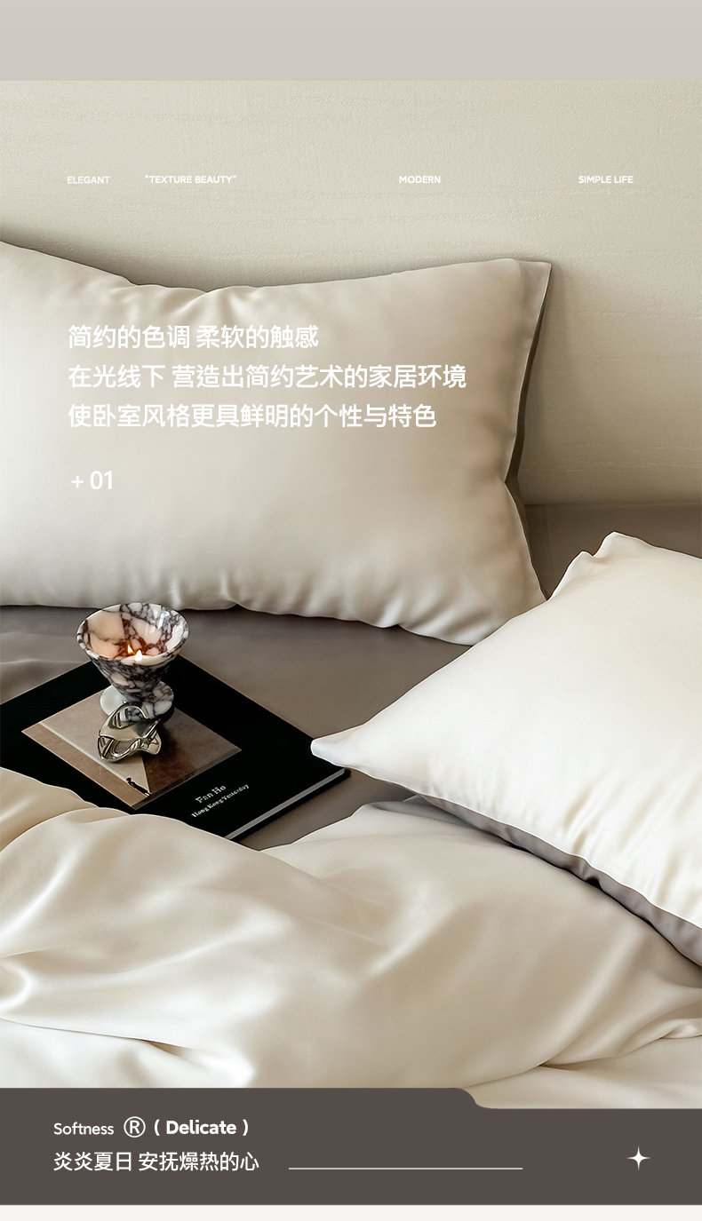 商品名称:麦田家纺 2025新款A类60S纯色兰精天丝四件套 乳蛋白-冷岩灰