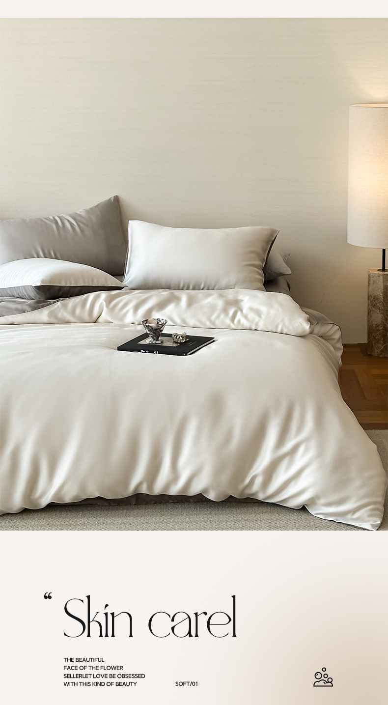 麦田家纺 2025新款A类60S纯色兰精天丝四件套 乳蛋白-冷岩灰