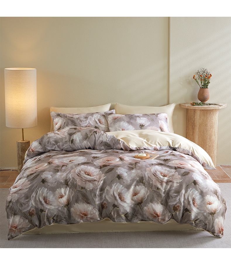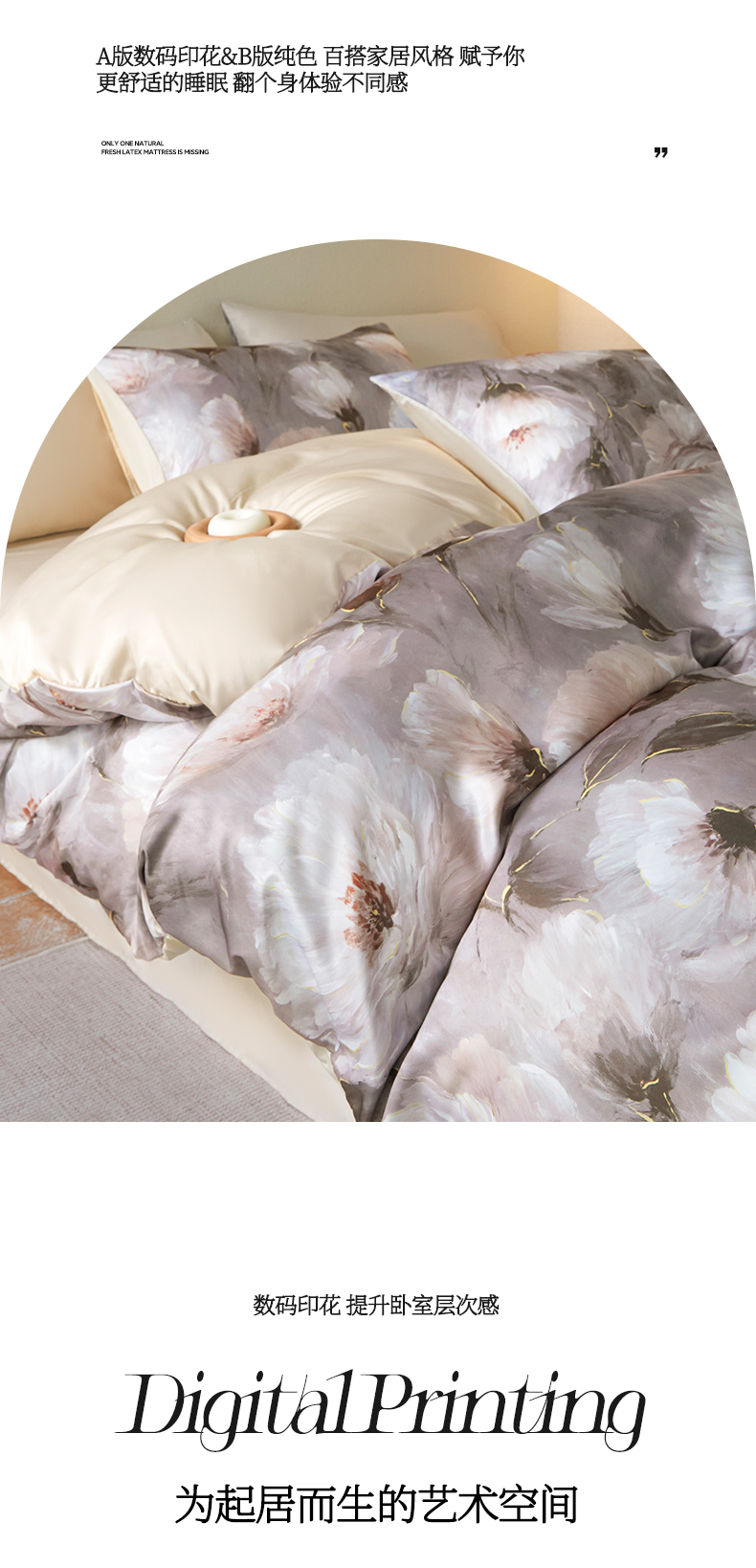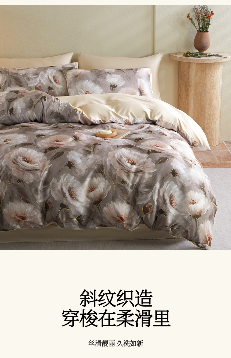 麦田家纺 2025新款A类冰丝天丝玉锦缎印花四件套 索莱娅咖