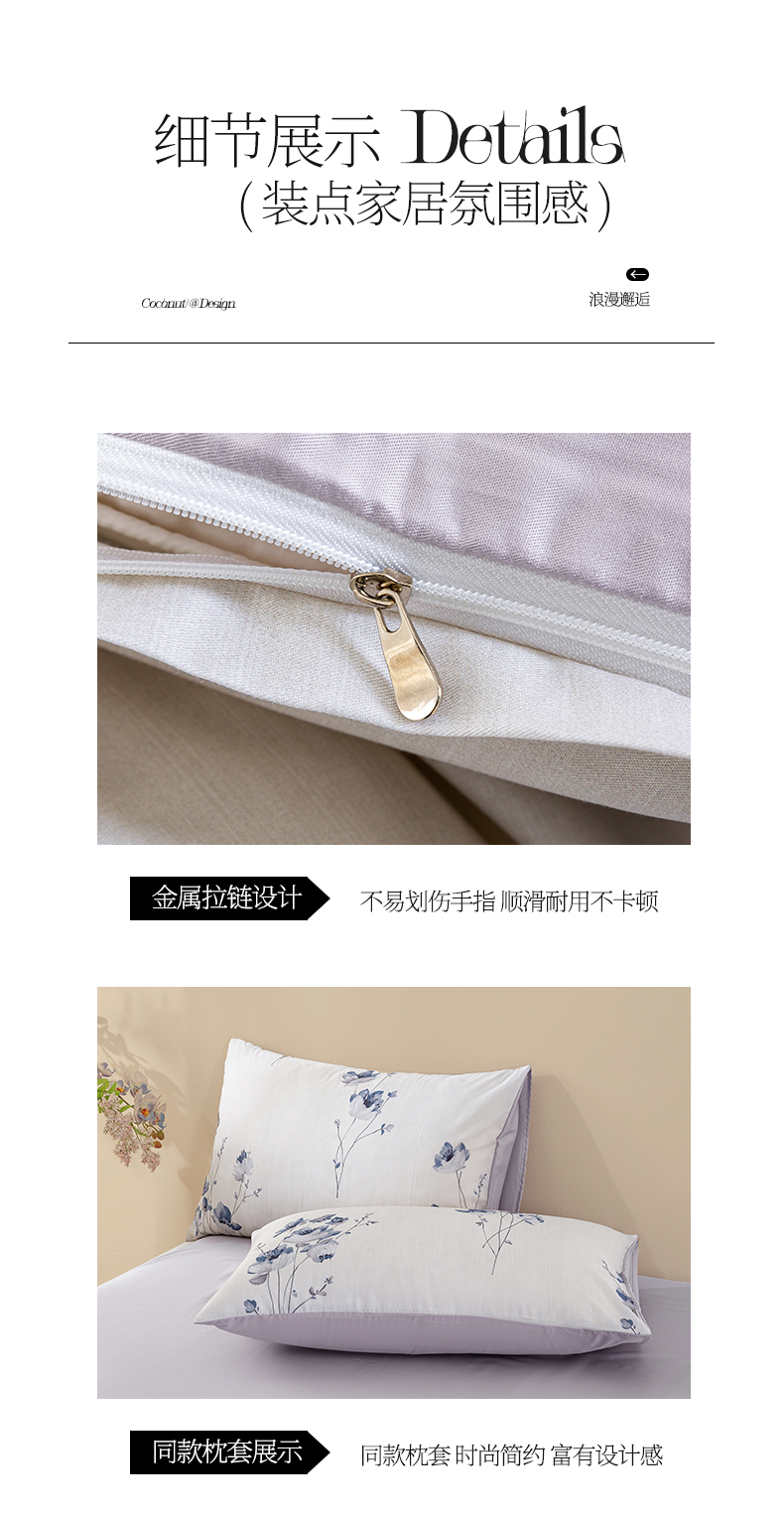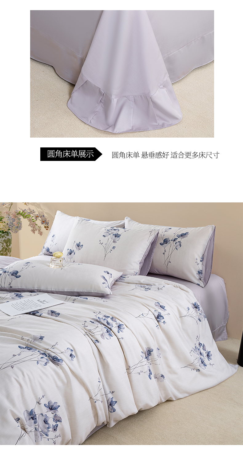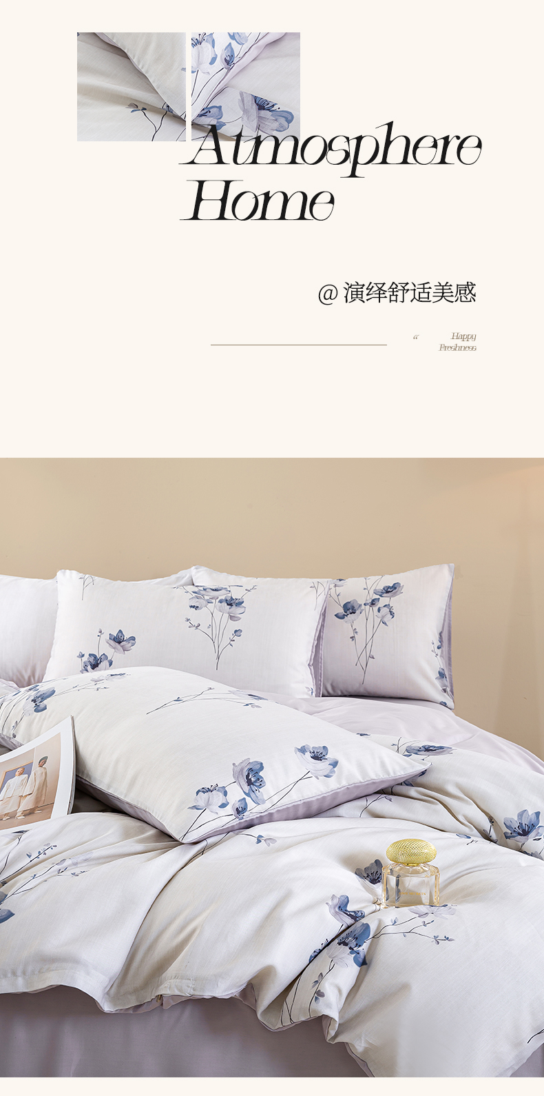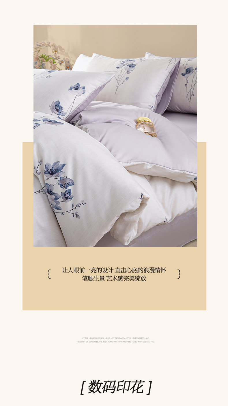商品名称:麦田家纺 2025新款50S莱赛尔天丝印花四件套 蓝韵生香