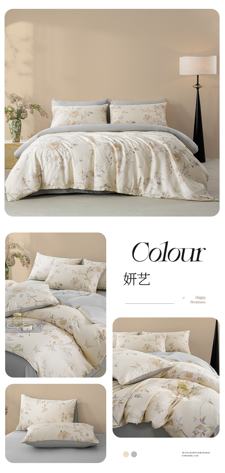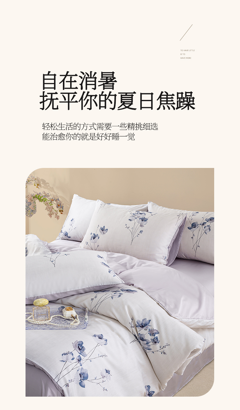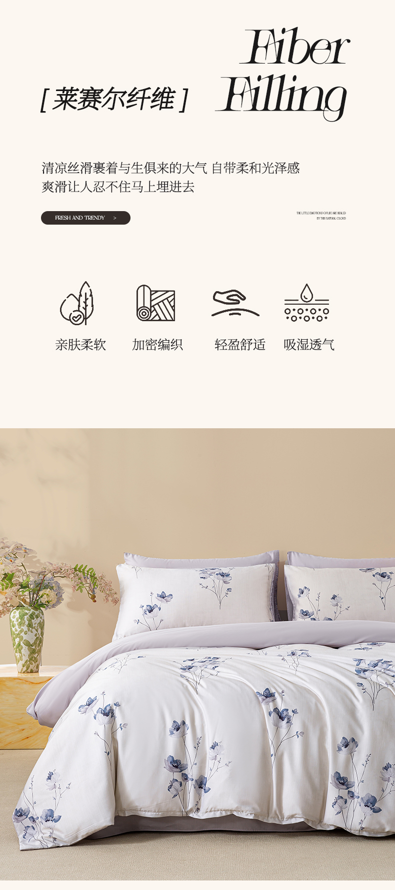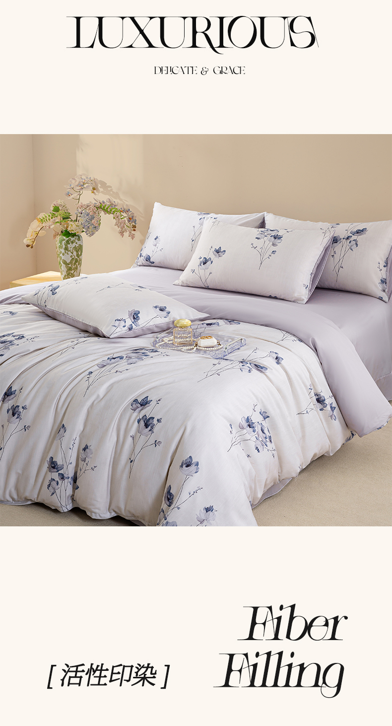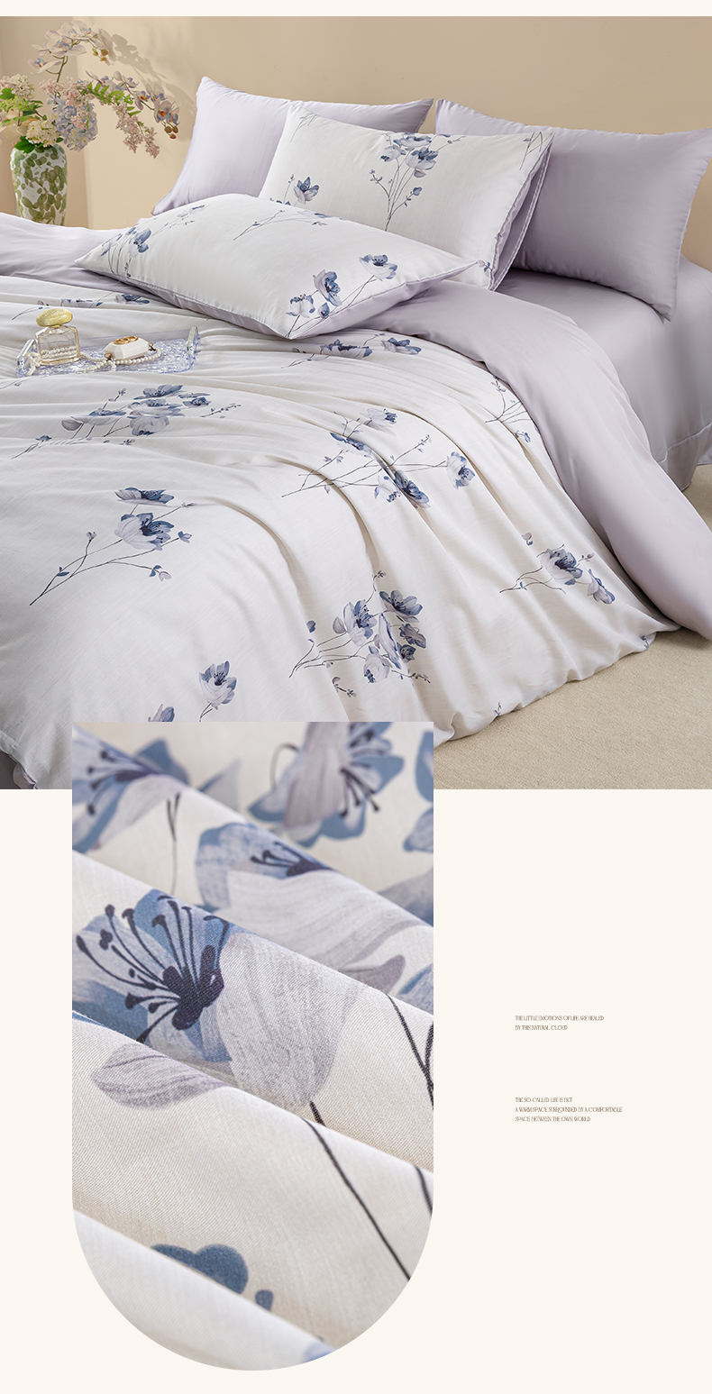 麦田家纺 2025新款50S莱赛尔天丝印花四件套 蓝韵生香